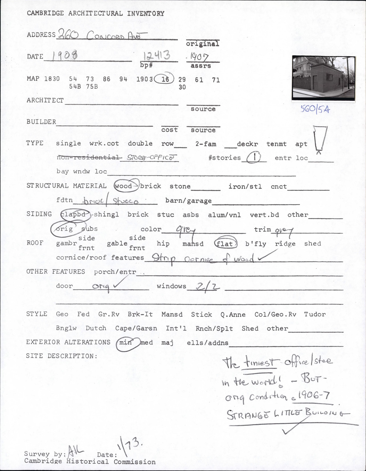 - Cambridge Historical Commission, Digital Architectural Survey and History.
