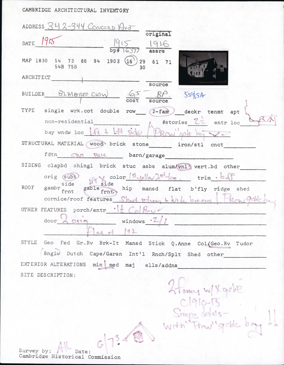 342-344 Concord Ave - Architectural Inventory Form