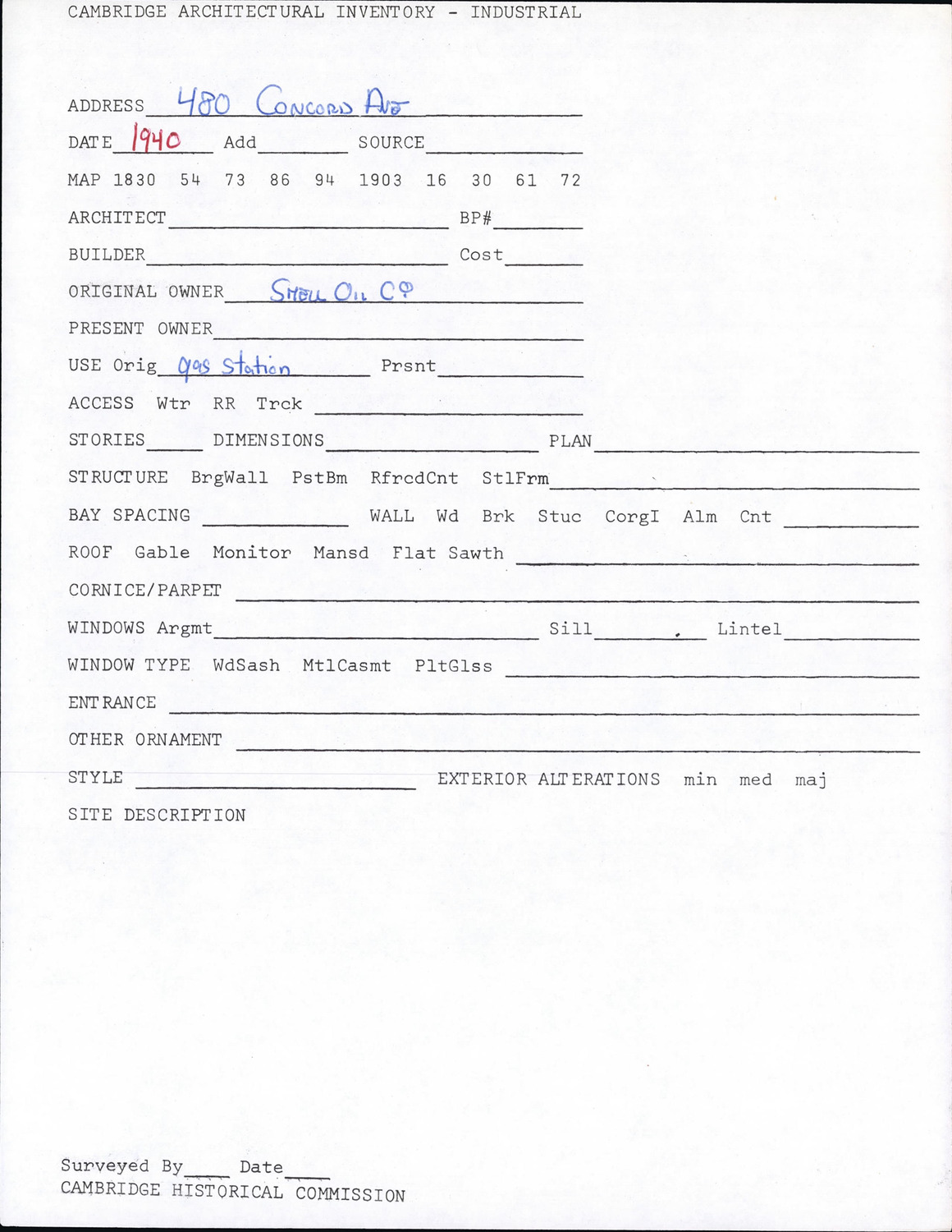 480 Concord Ave - Architectural Inventory Form