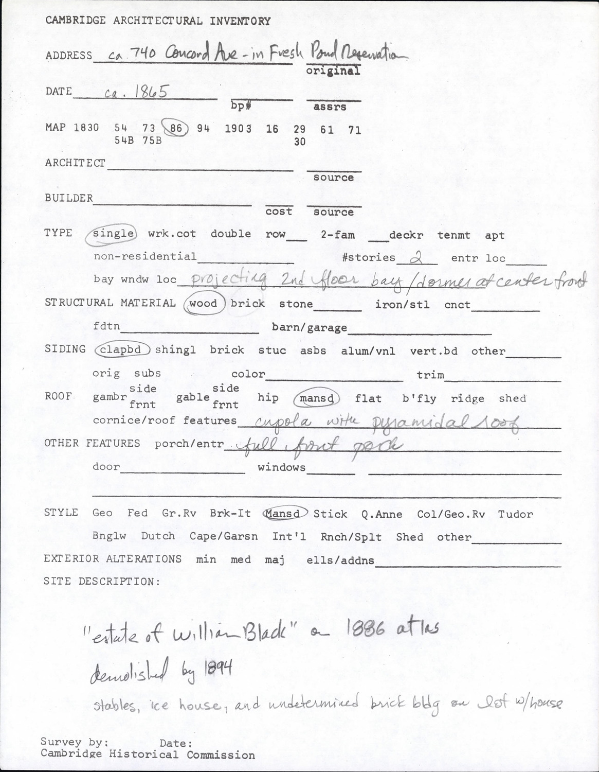 - Cambridge Historical Commission, Digital Architectural Survey and History.