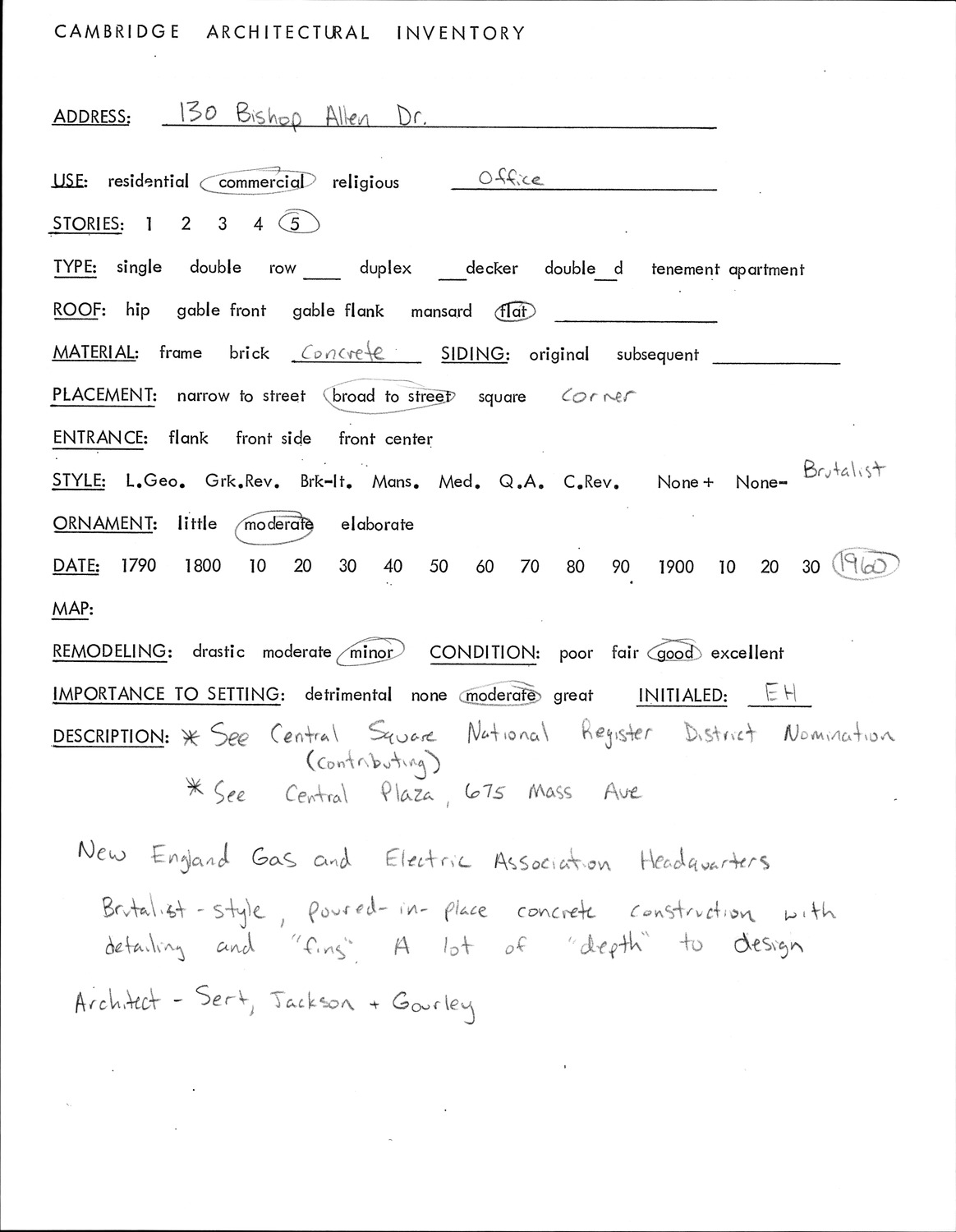 130 Bishop Allen Dr - Architectural Inventory Form