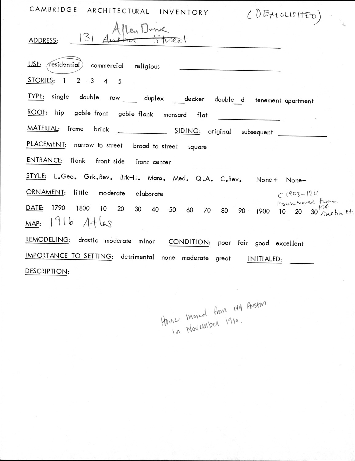 131 Bishop Allen Dr - Architectural Inventory Form