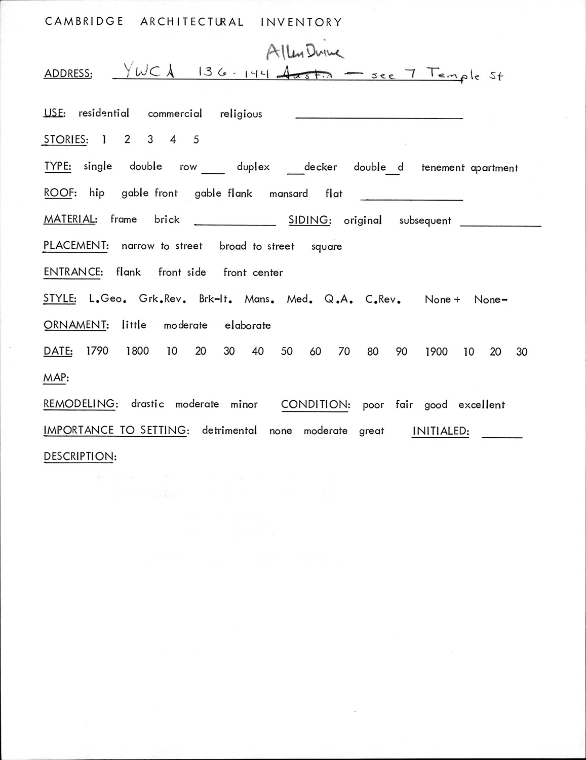 136-144 Bishop Allen Dr - Architectural Inventory Form
