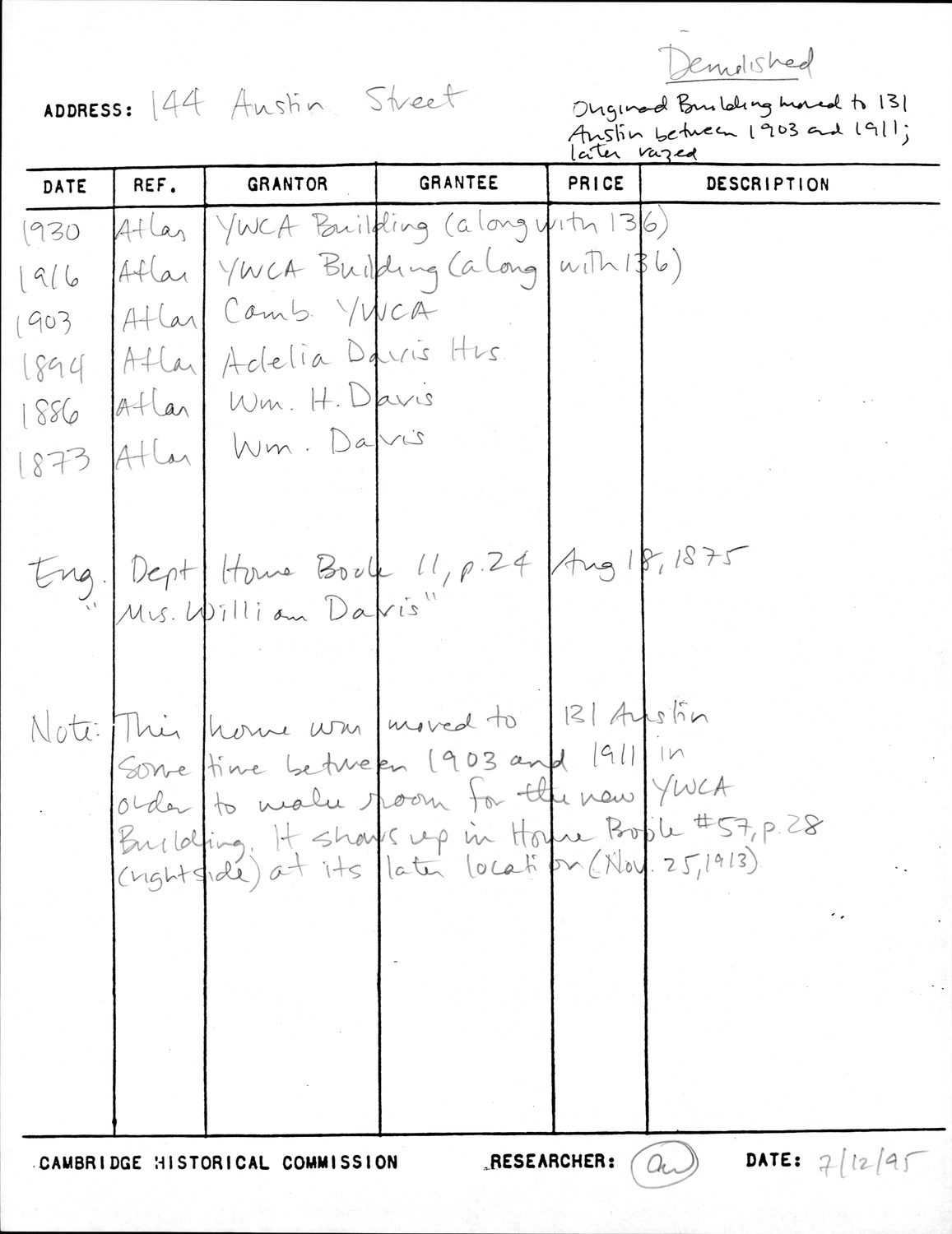 144 Bishop Allen Dr - Research Form