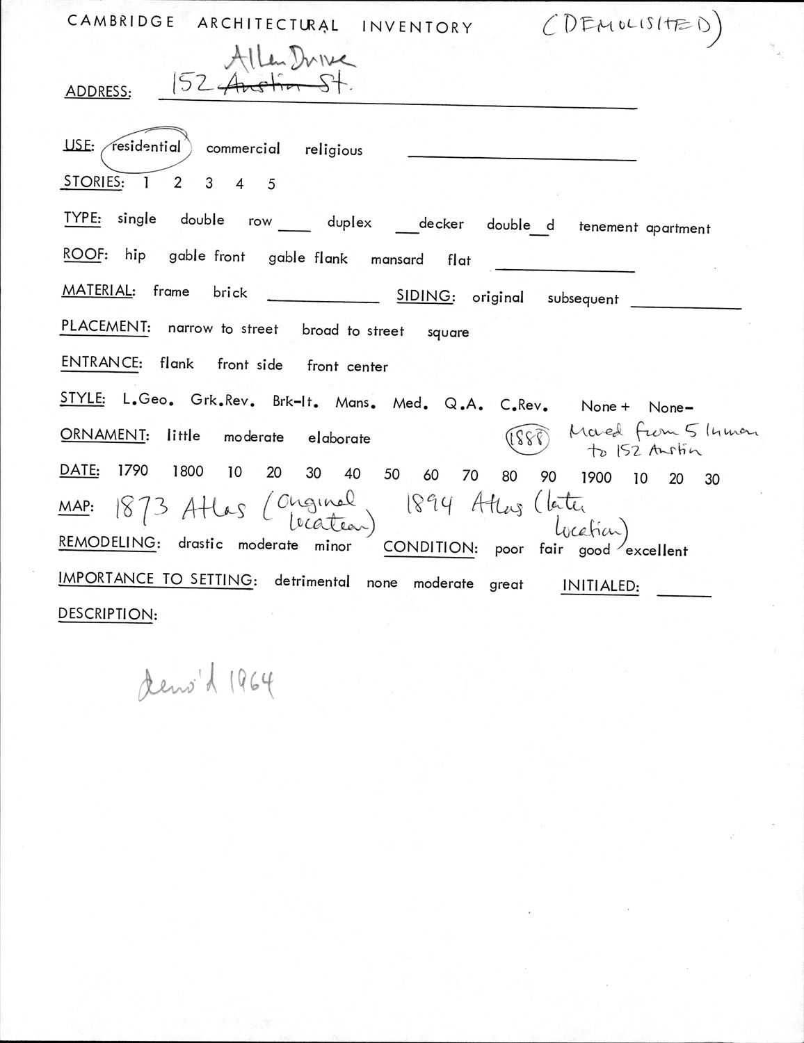 152 Bishop Allen Dr - Architectural Inventory Form