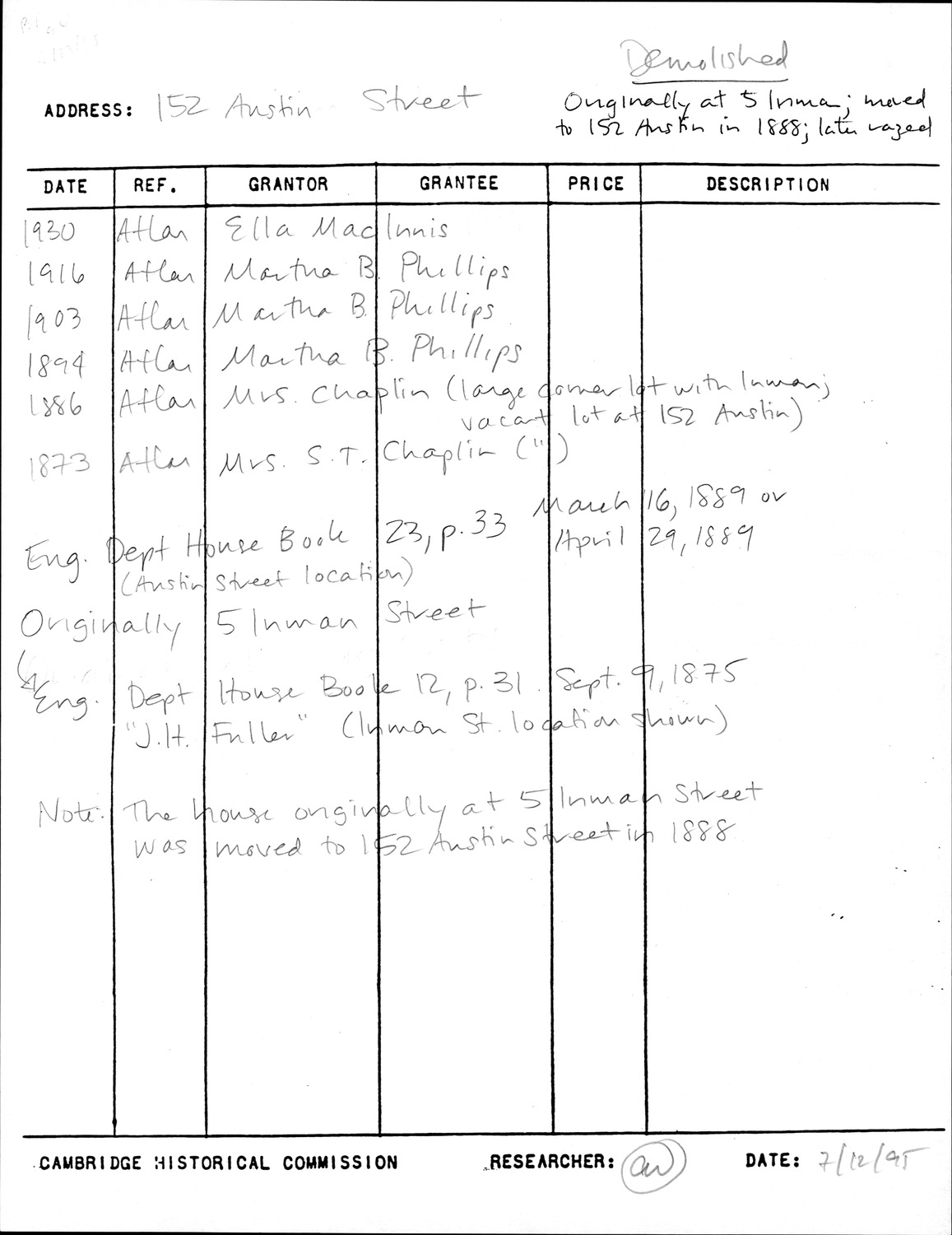 152 Bishop Allen Dr - Research Form