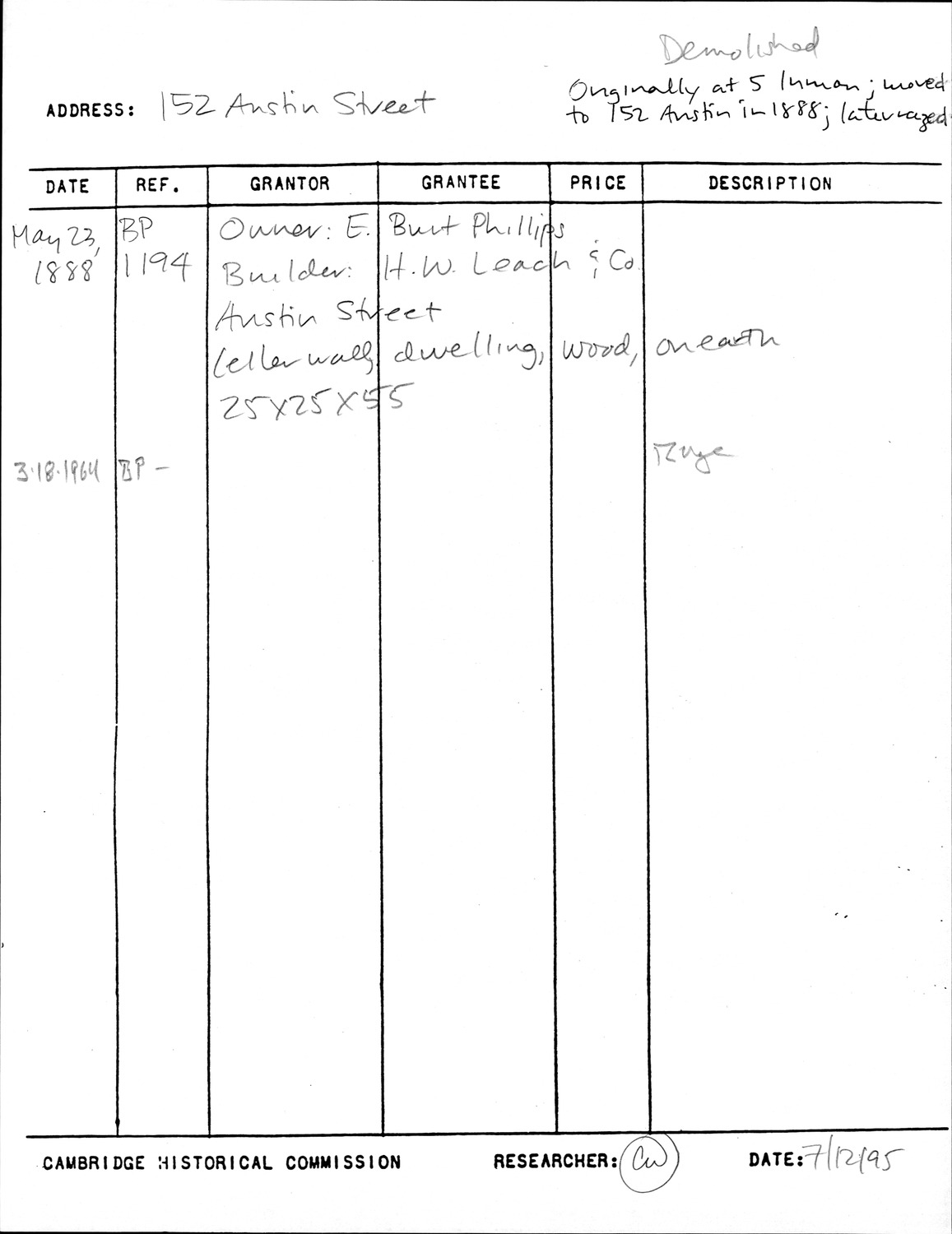 - Cambridge Historical Commission, Digital Architectural Survey and History.