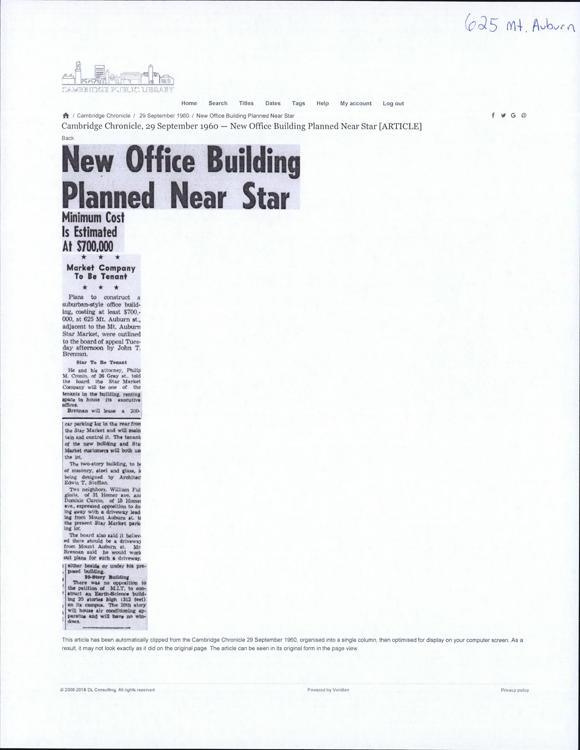 625 Mt Auburn St - Published Material