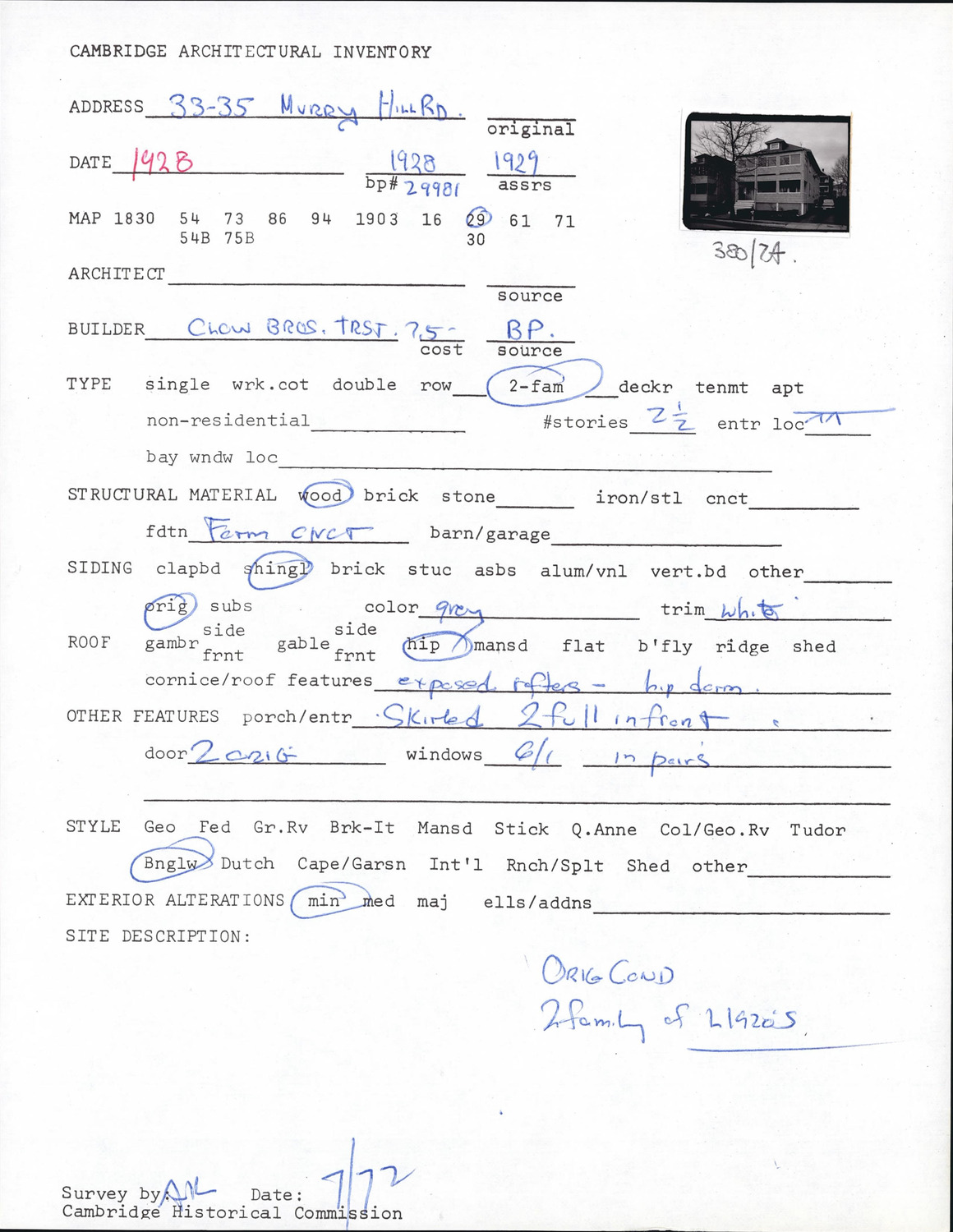 33-35 Murray Hill Rd - Architectural Inventory Form