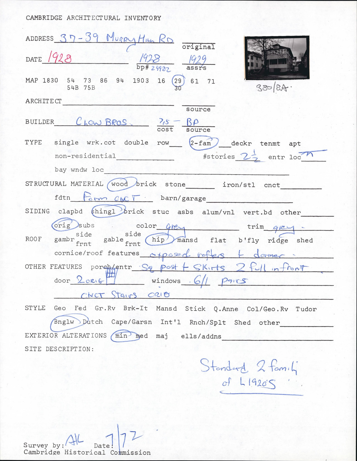 37-39 Murray Hill Rd - Architectural Inventory Form
