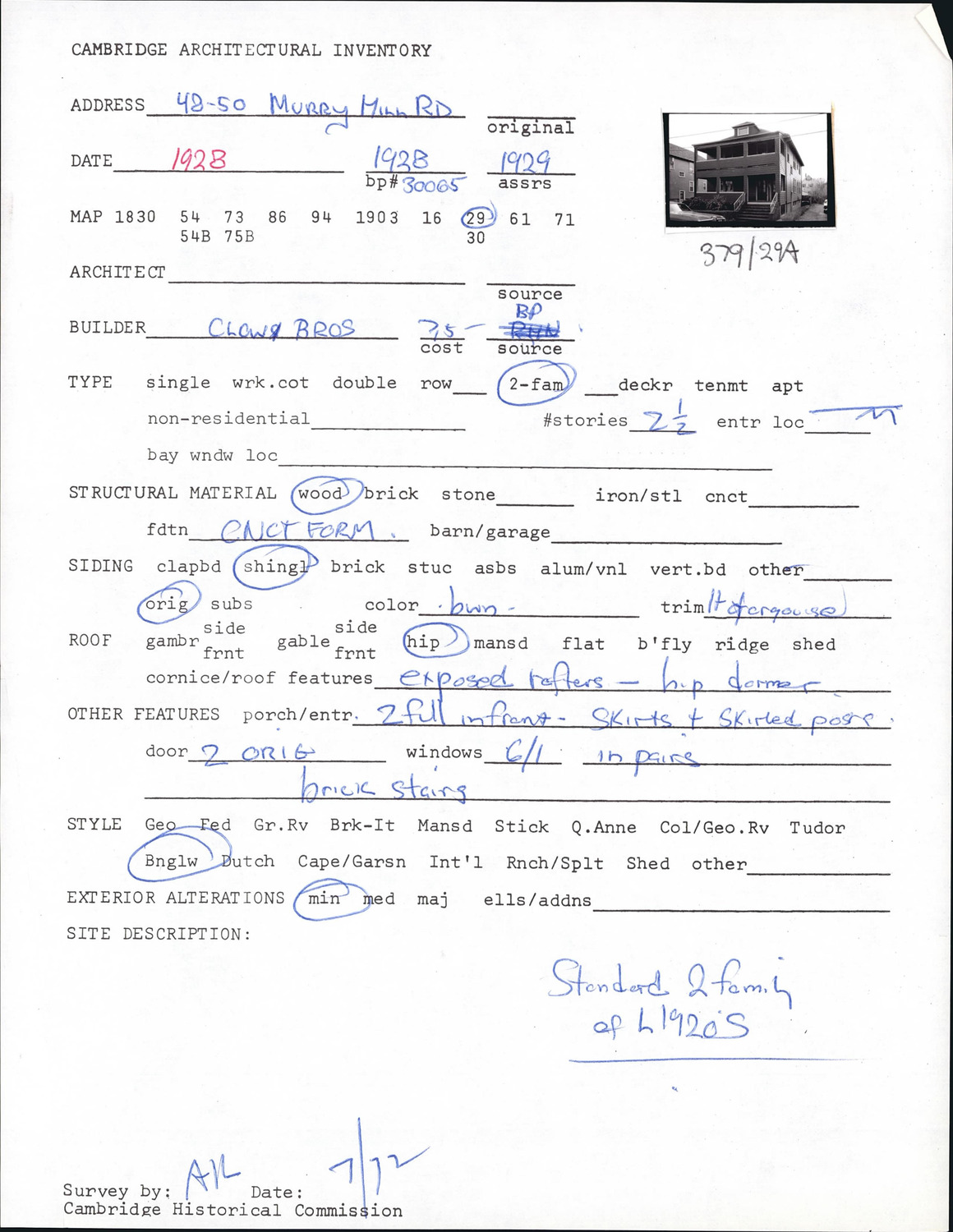 48-50 Murray Hill Rd - Architectural Inventory Form