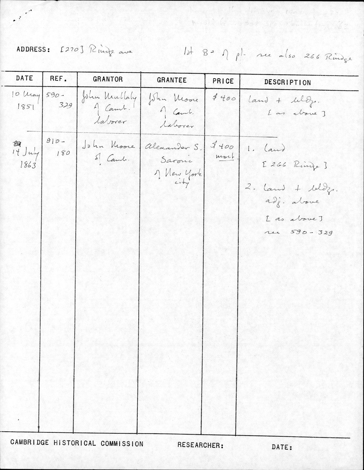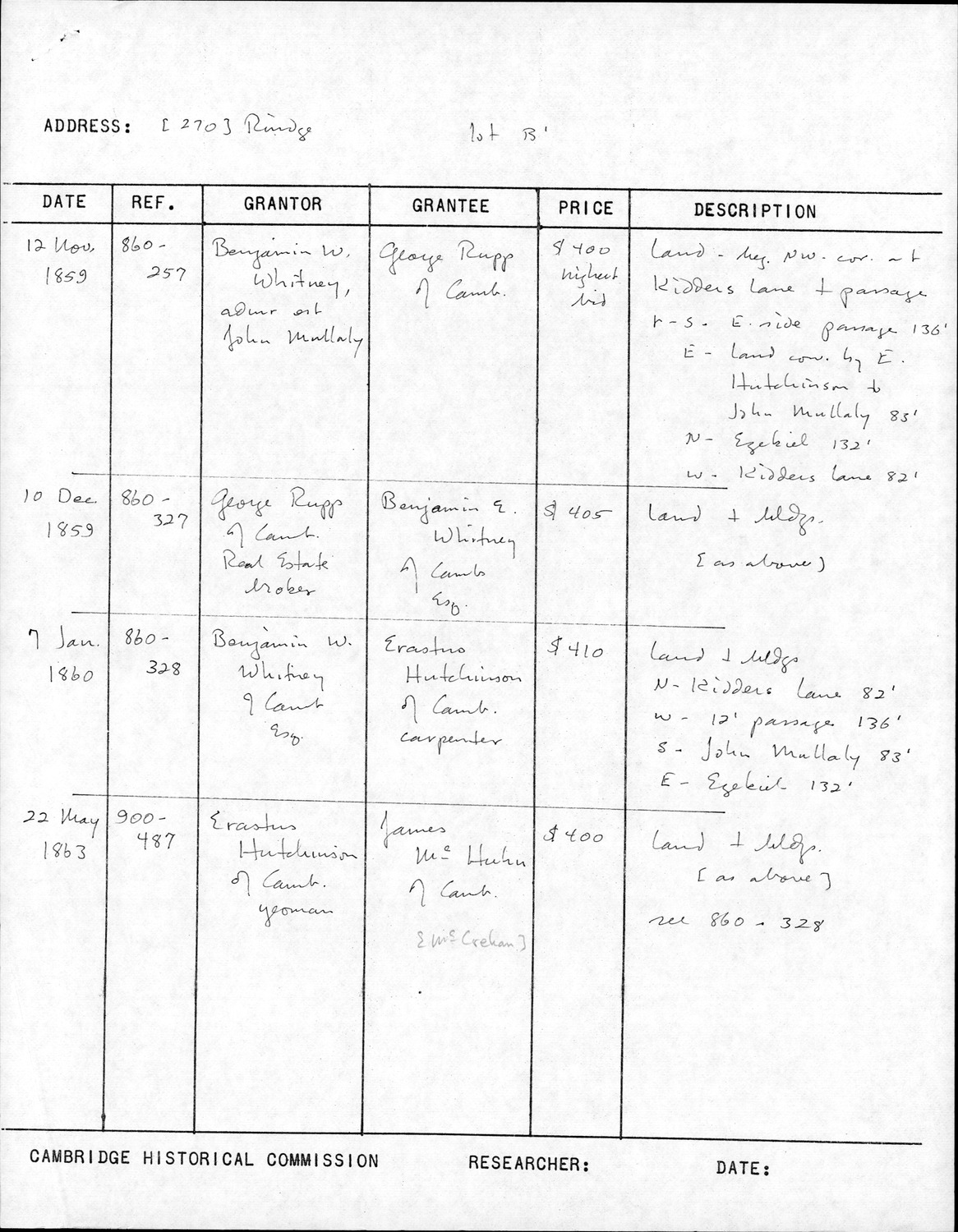 - Cambridge Historical Commission, Digital Architectural Survey and History.