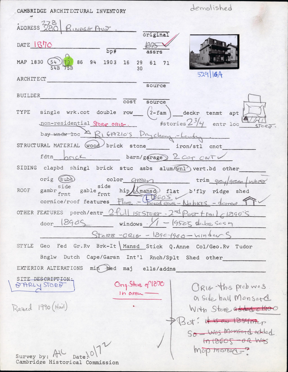 278-280 Rindge Ave - Architectural Inventory Form