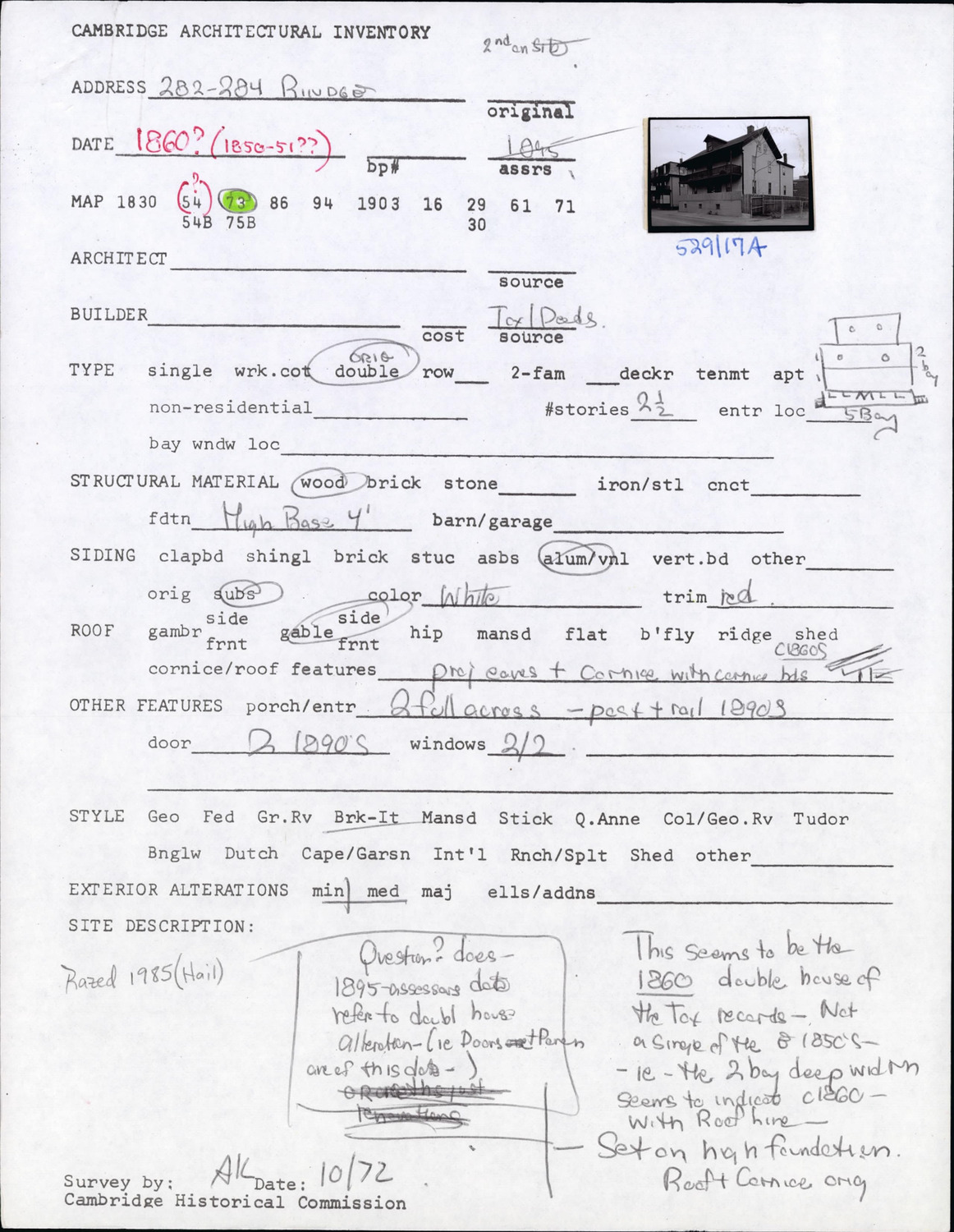 - Cambridge Historical Commission, Digital Architectural Survey and History.