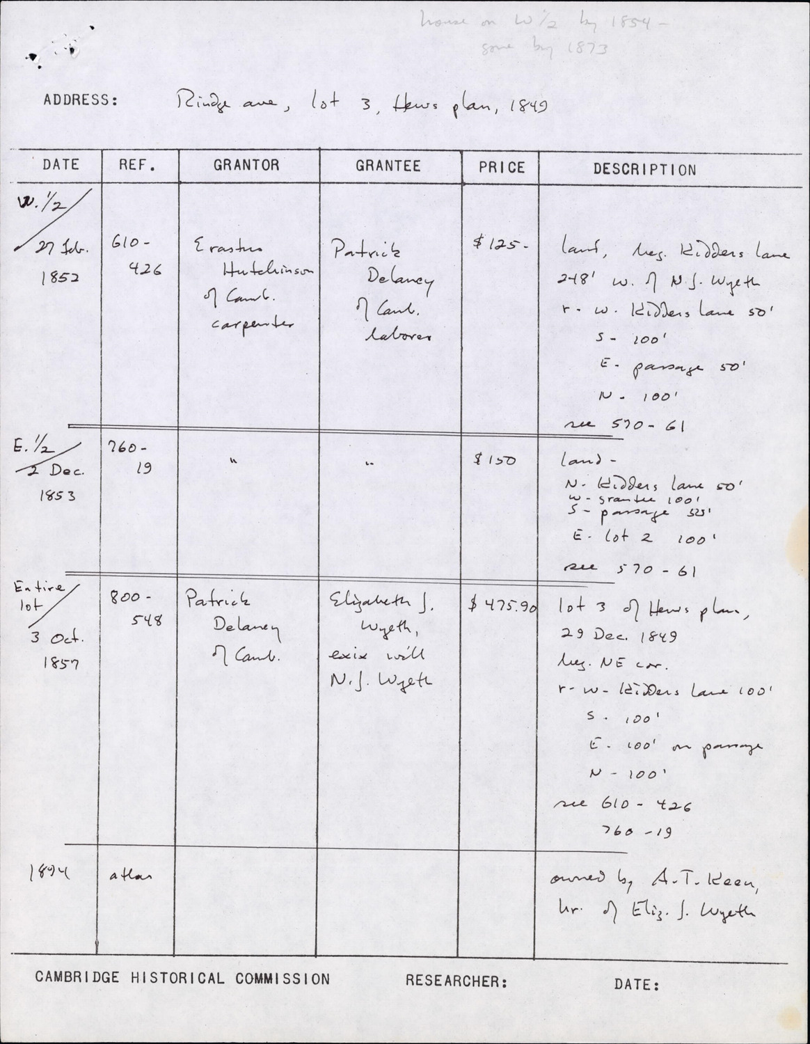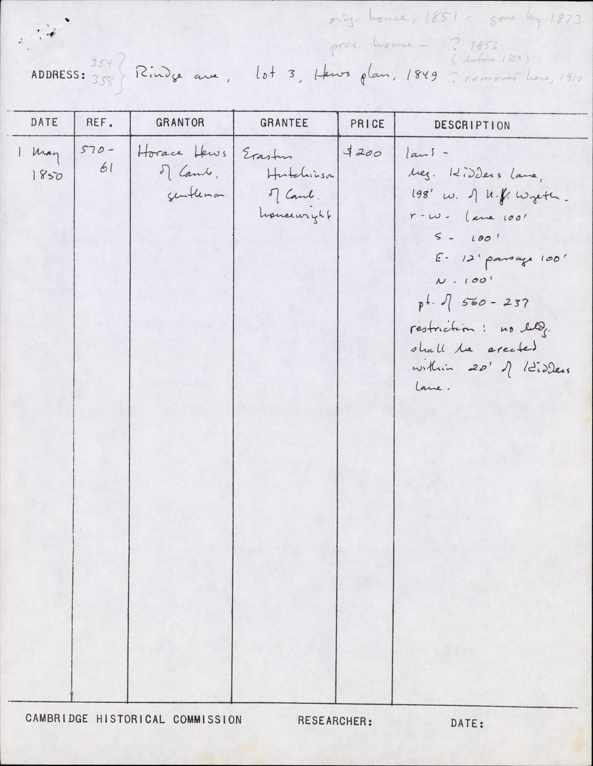 - Cambridge Historical Commission, Digital Architectural Survey and History.