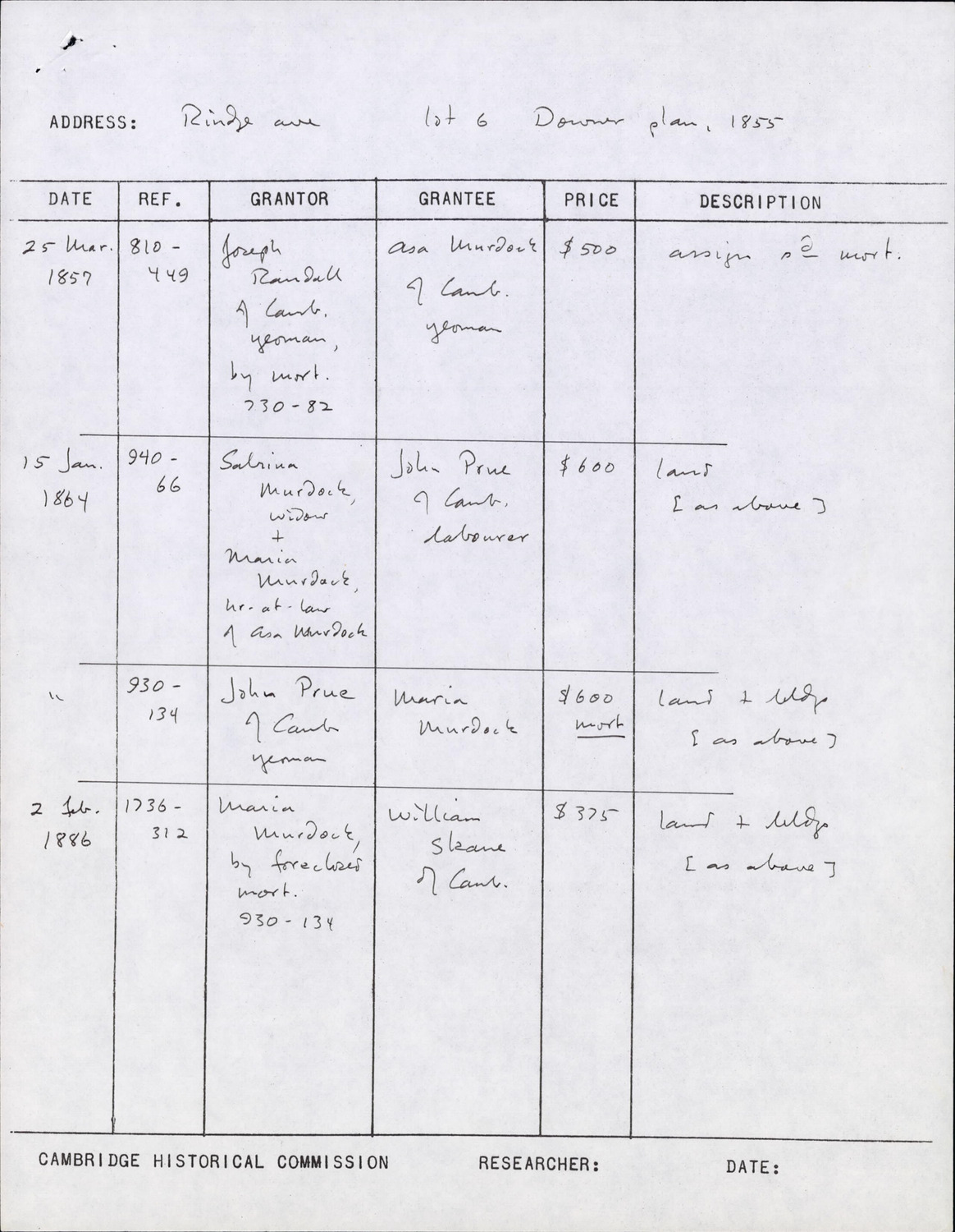 - Cambridge Historical Commission, Digital Architectural Survey and History.