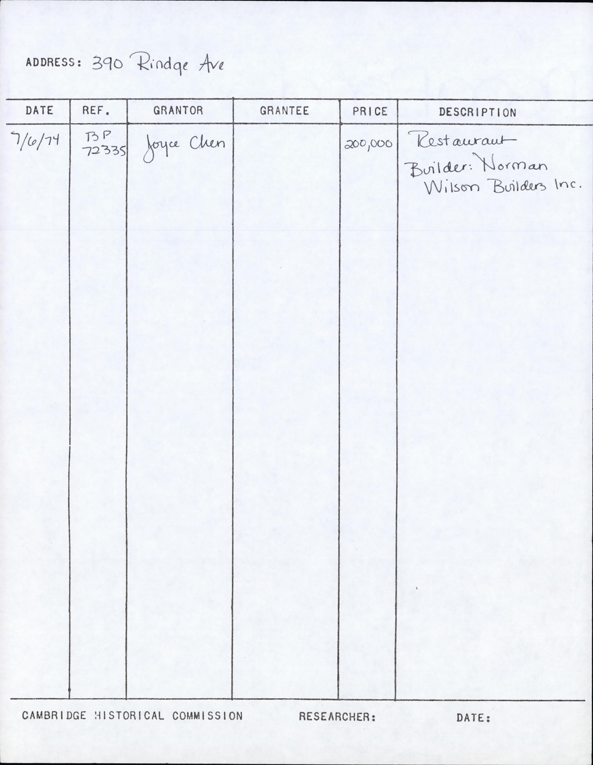 - Cambridge Historical Commission, Digital Architectural Survey and History.