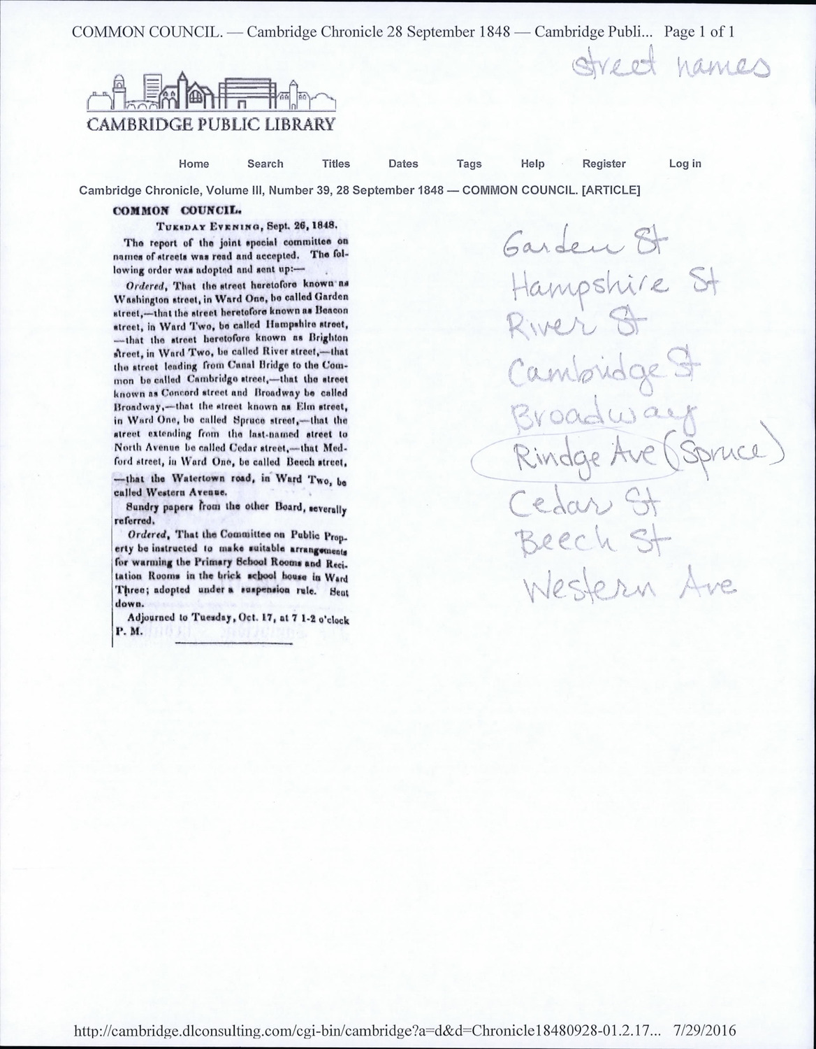 - Cambridge Historical Commission, Digital Architectural Survey and History.