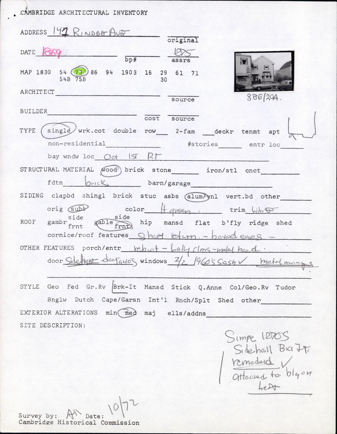 - Cambridge Historical Commission, Digital Architectural Survey and History.