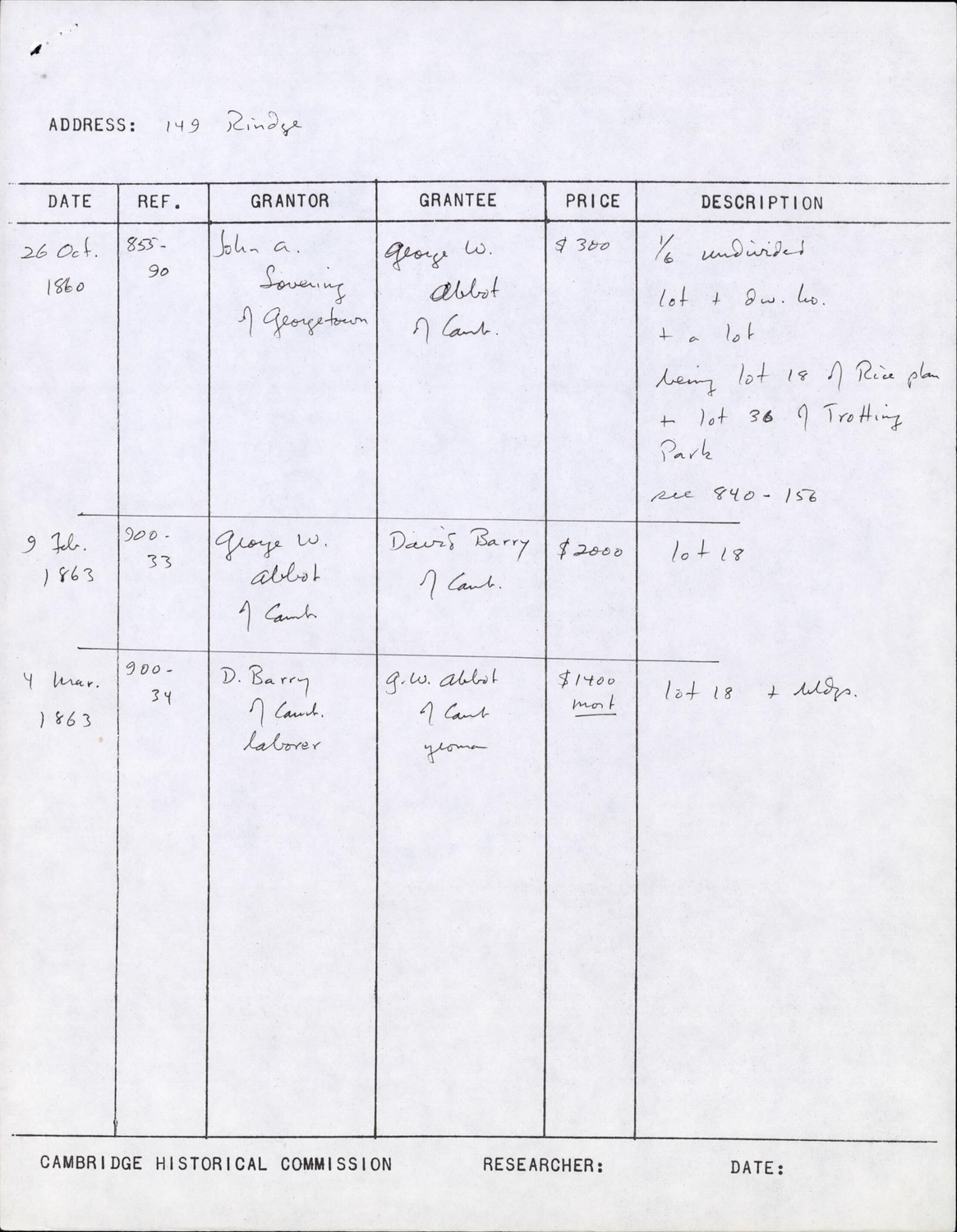 - Cambridge Historical Commission, Digital Architectural Survey and History.