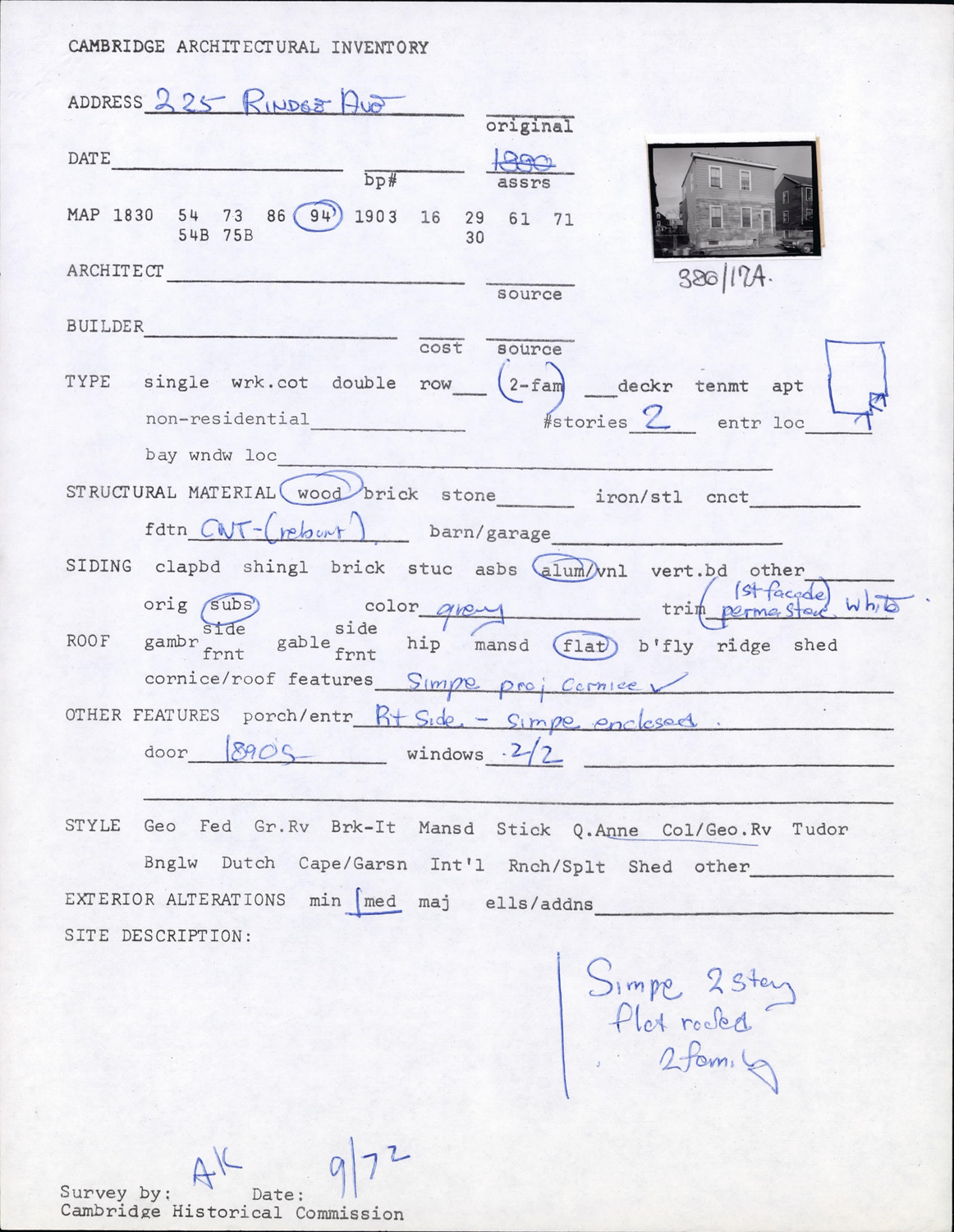 - Cambridge Historical Commission, Digital Architectural Survey and History.