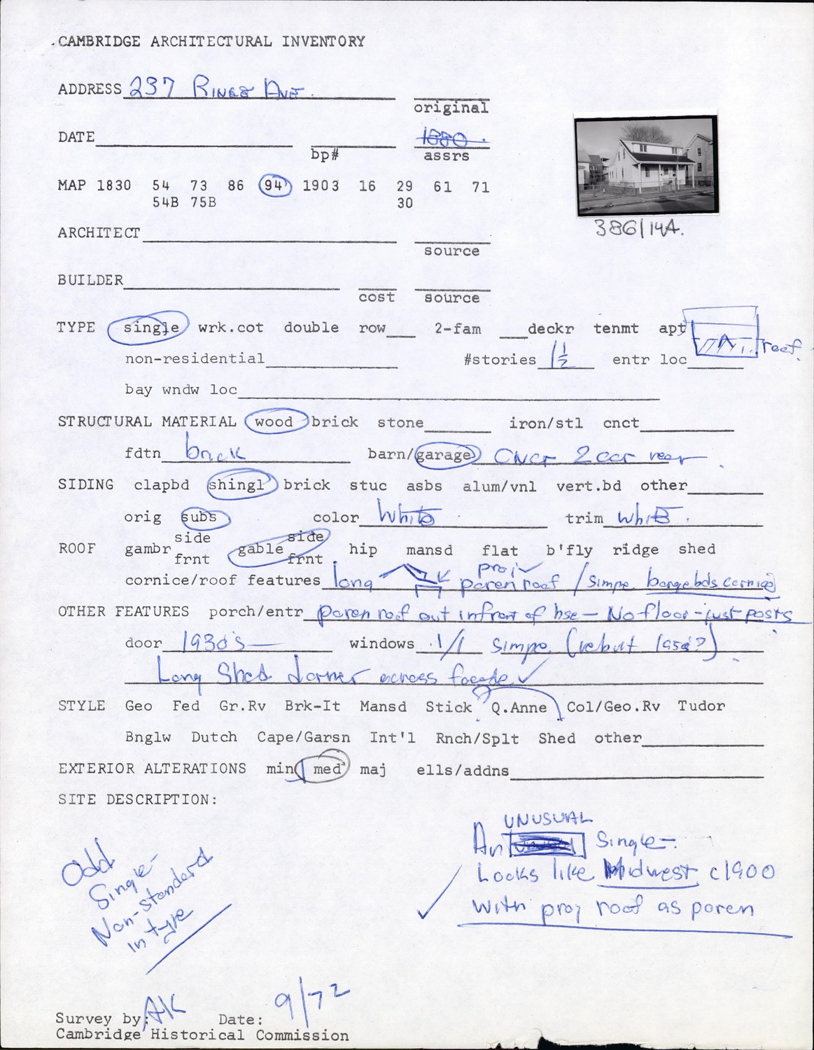 237 Rindge Ave - Architectural Inventory Form