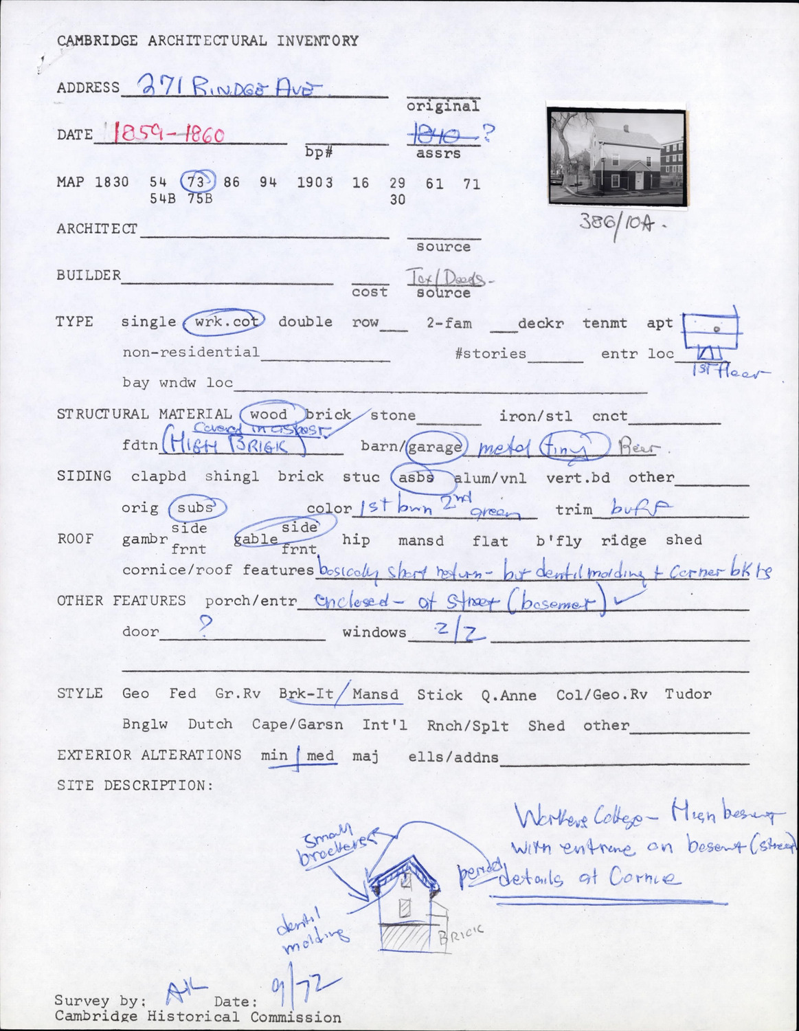 - Cambridge Historical Commission, Digital Architectural Survey and History.