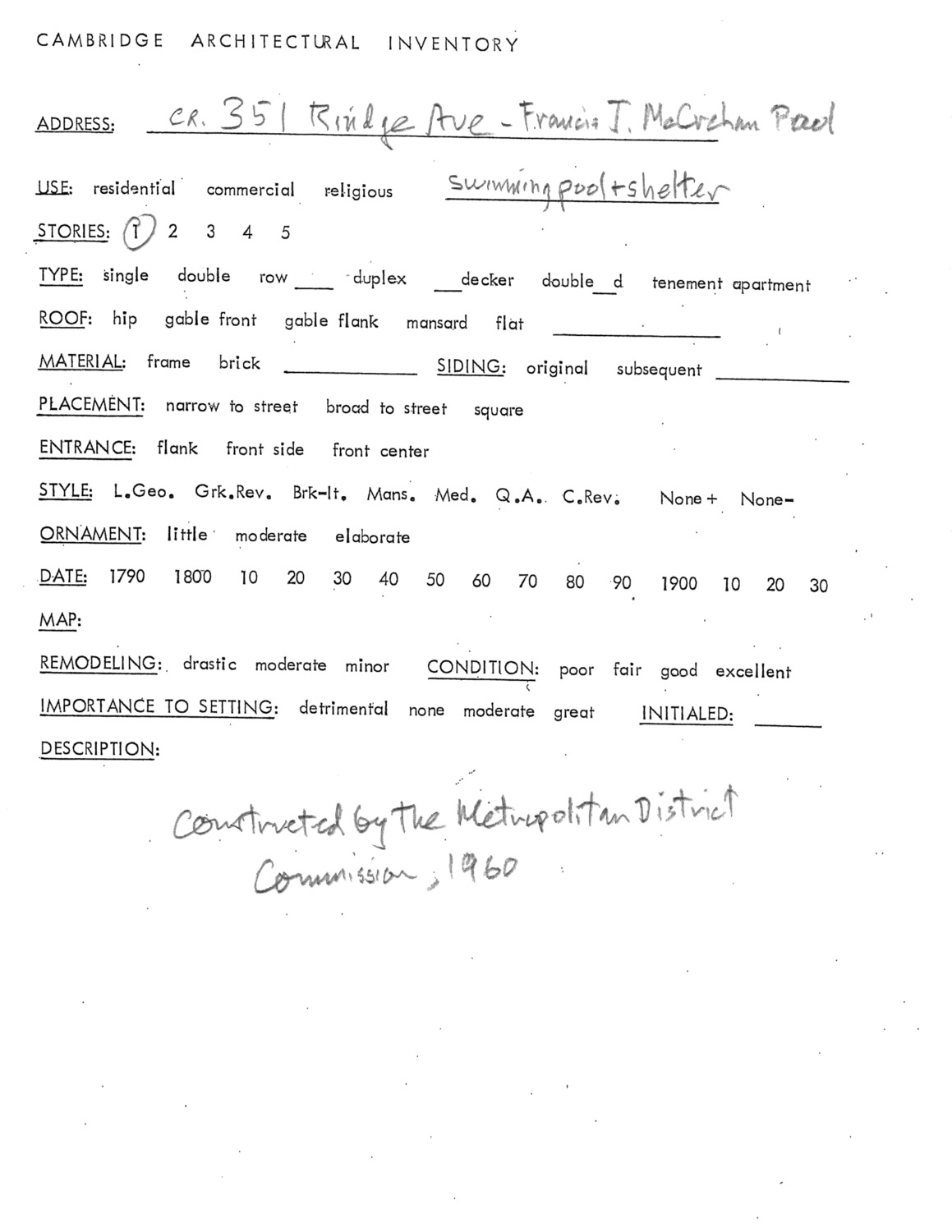 - Cambridge Historical Commission, Digital Architectural Survey and History.