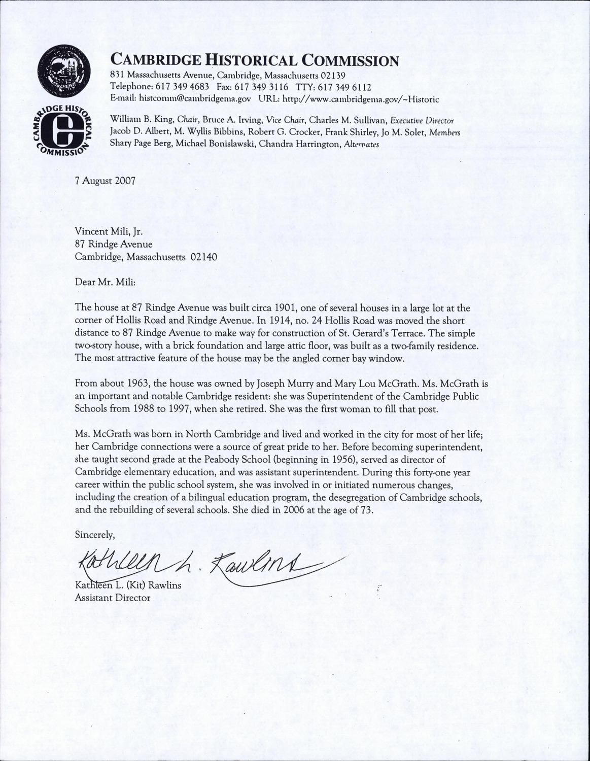 87 Rindge Ave - Correspondence
