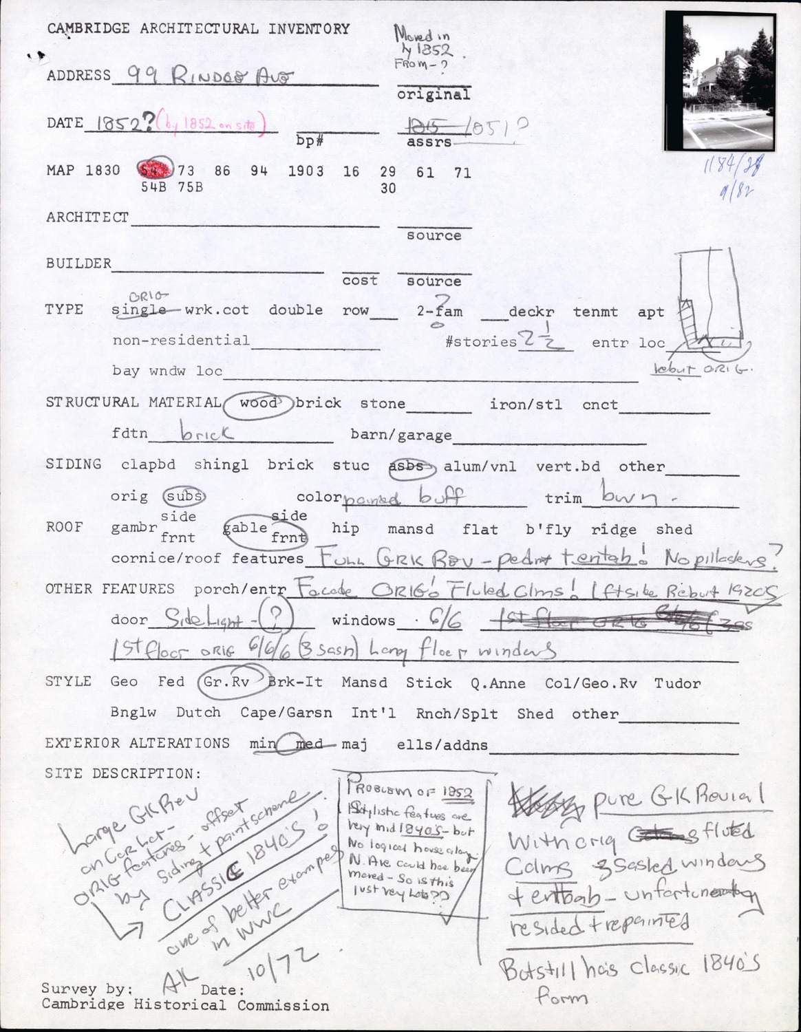 - Cambridge Historical Commission, Digital Architectural Survey and History.