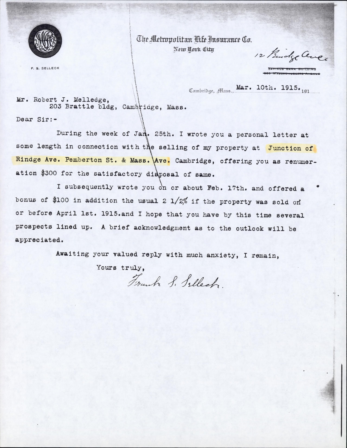 12 Rindge Ave - Correspondence
