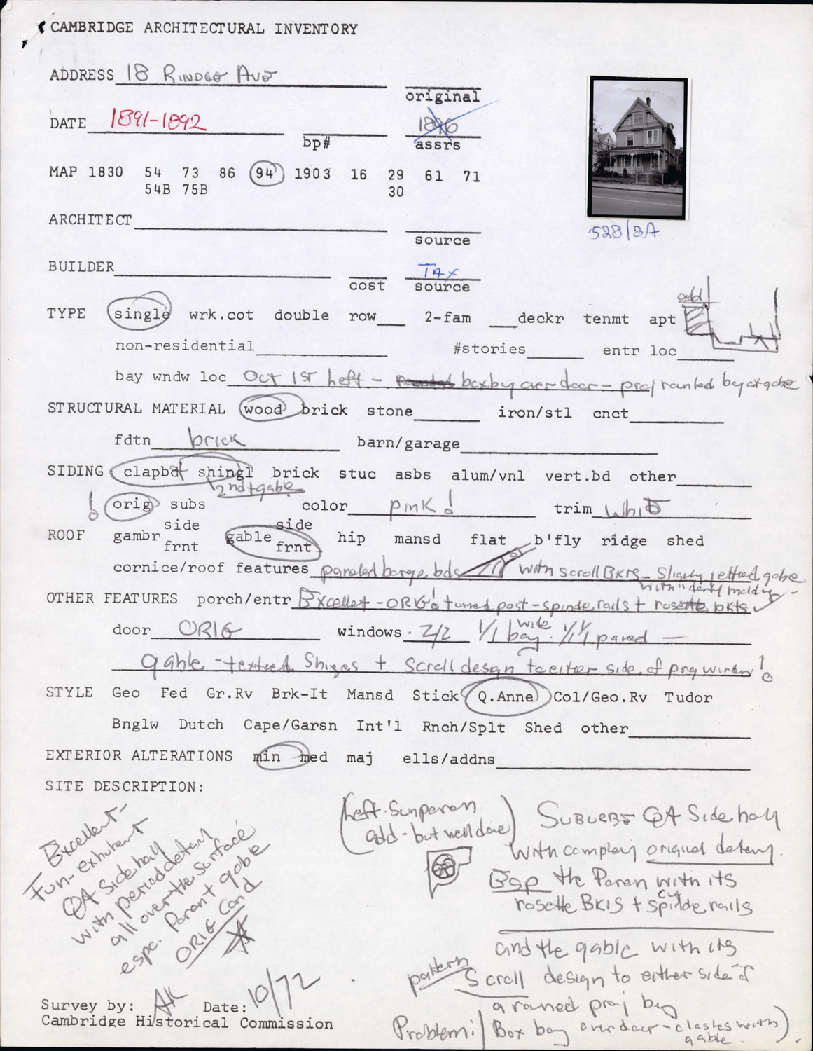 - Cambridge Historical Commission, Digital Architectural Survey and History.