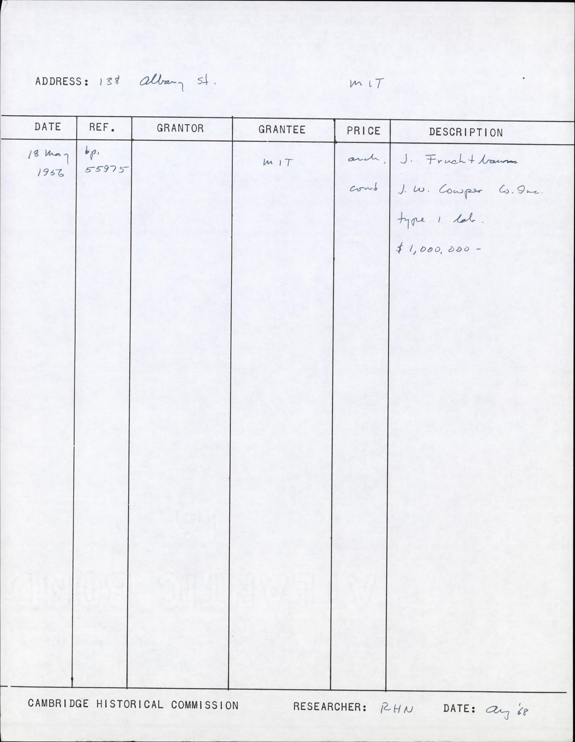 - Cambridge Historical Commission, Digital Architectural Survey and History.