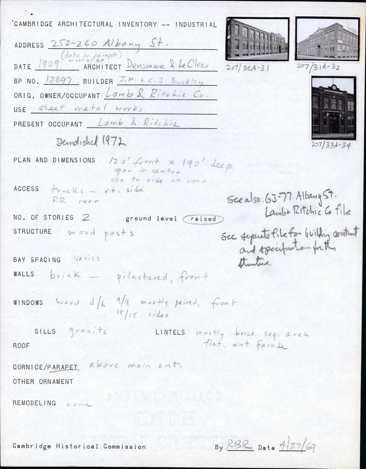 252-260 Albany St - Architectural Inventory Form