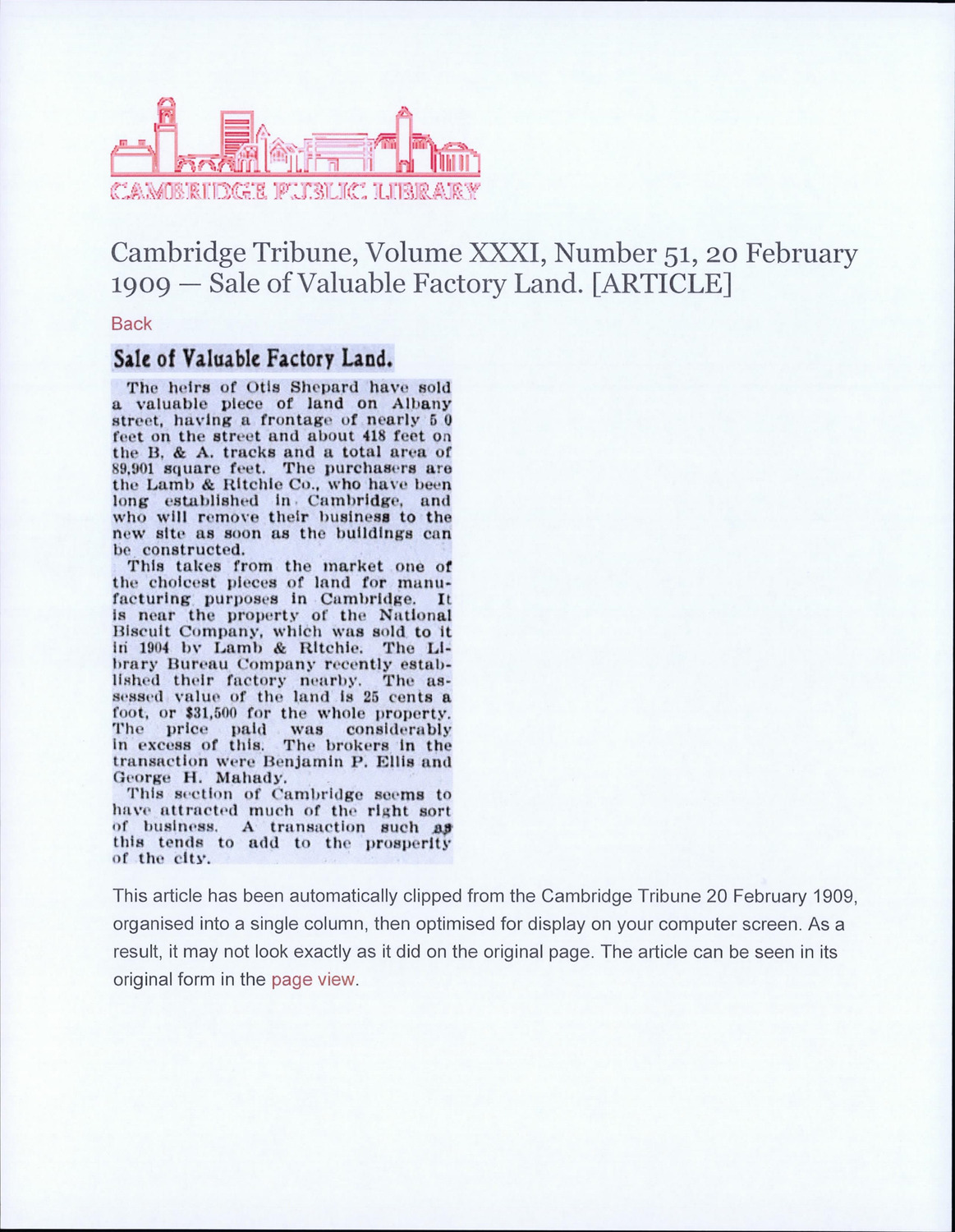 - Cambridge Historical Commission, Digital Architectural Survey and History.