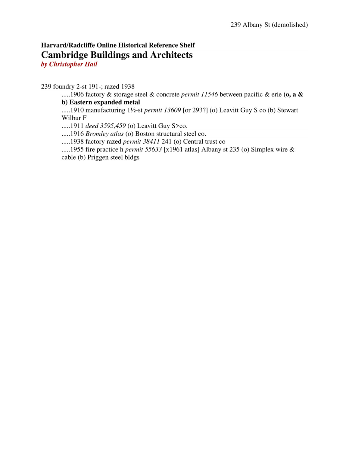 - Cambridge Historical Commission, Digital Architectural Survey and History.