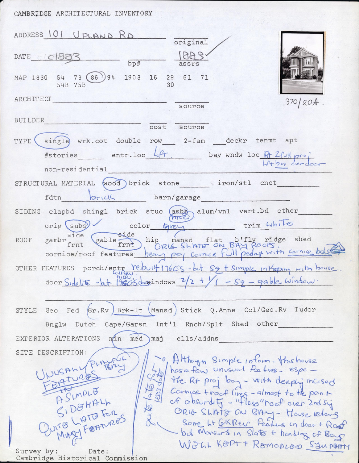 101 Upland Rd - Architectural Inventory Form