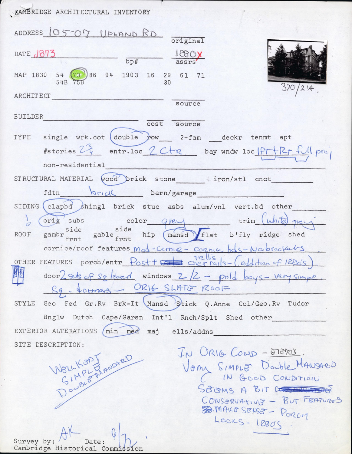 105-107 Upland Rd - Architectural Inventory Form
