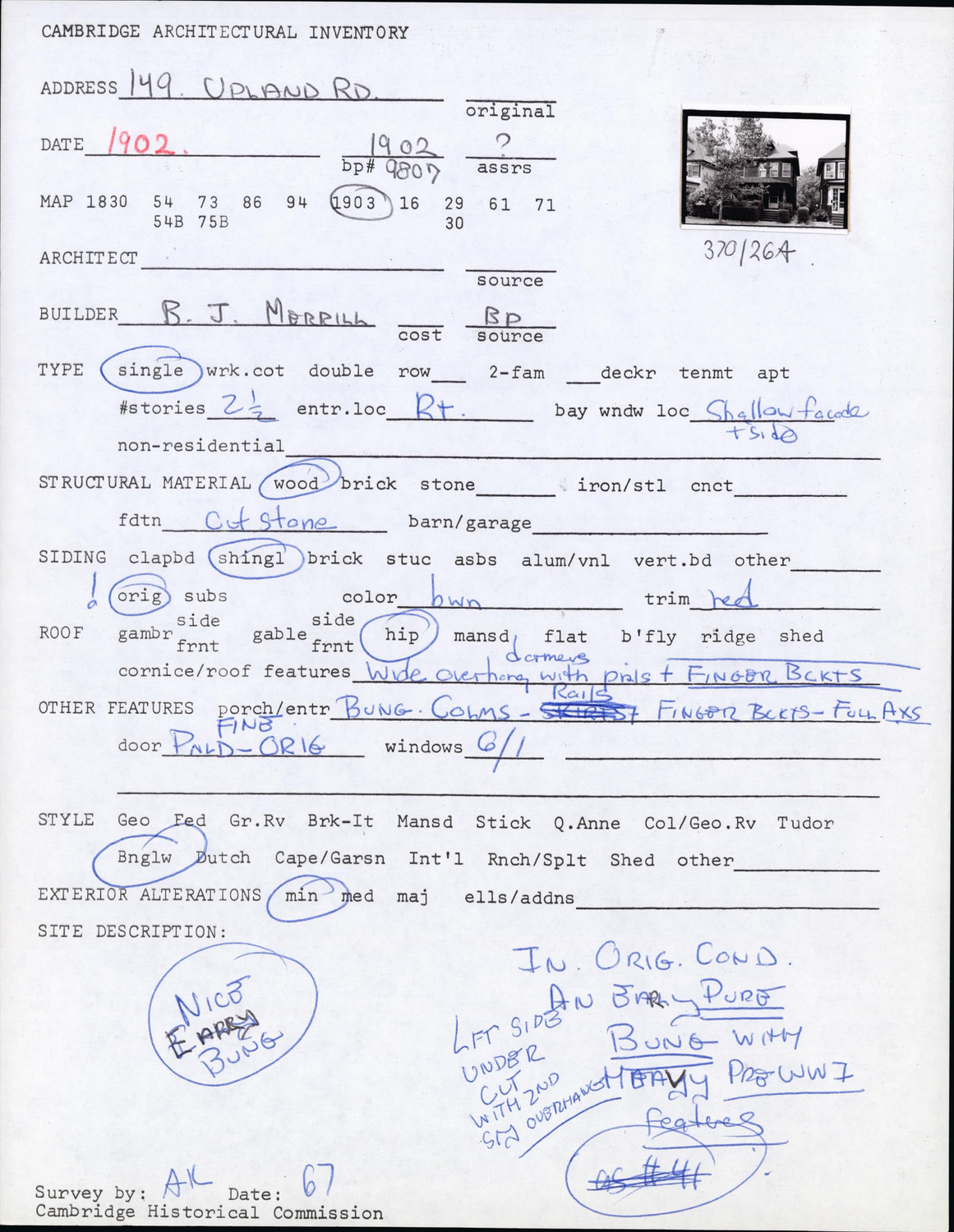 - Cambridge Historical Commission, Digital Architectural Survey and History.