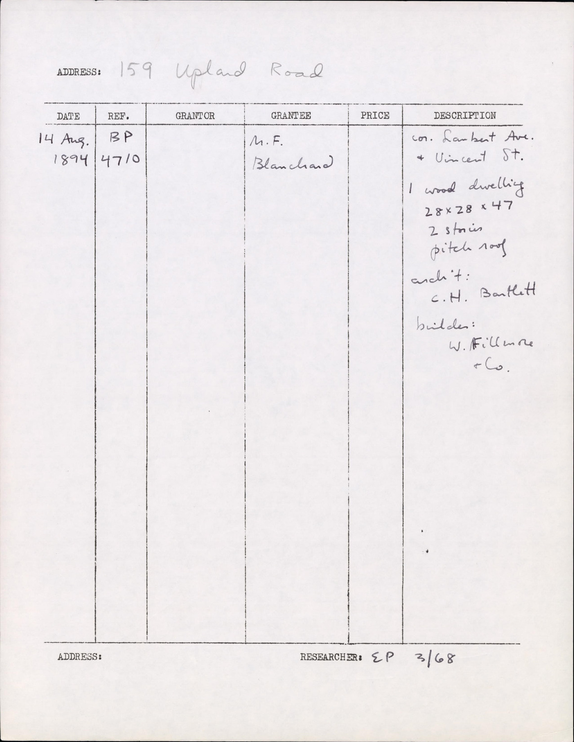 159 Upland Rd - Research Form