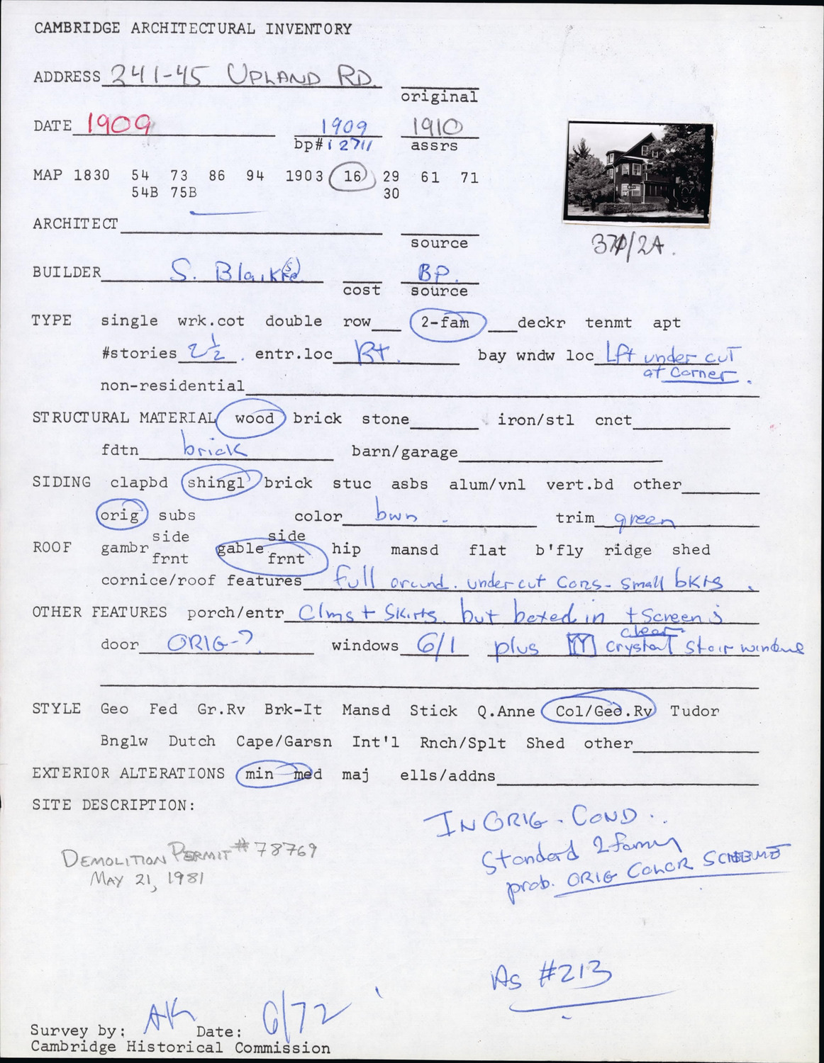 241-245 Upland Rd - Architectural Inventory Form