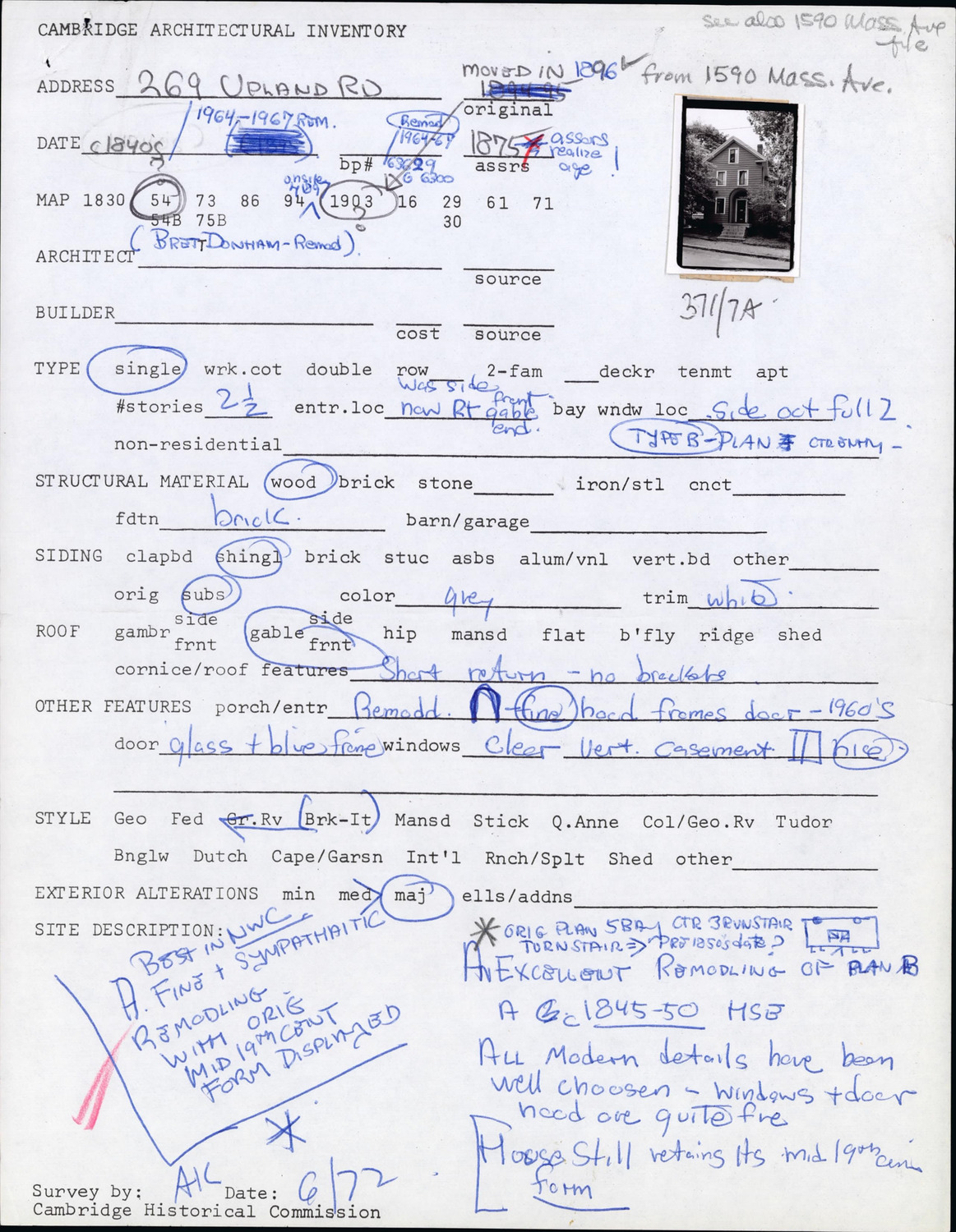 - Cambridge Historical Commission, Digital Architectural Survey and History.