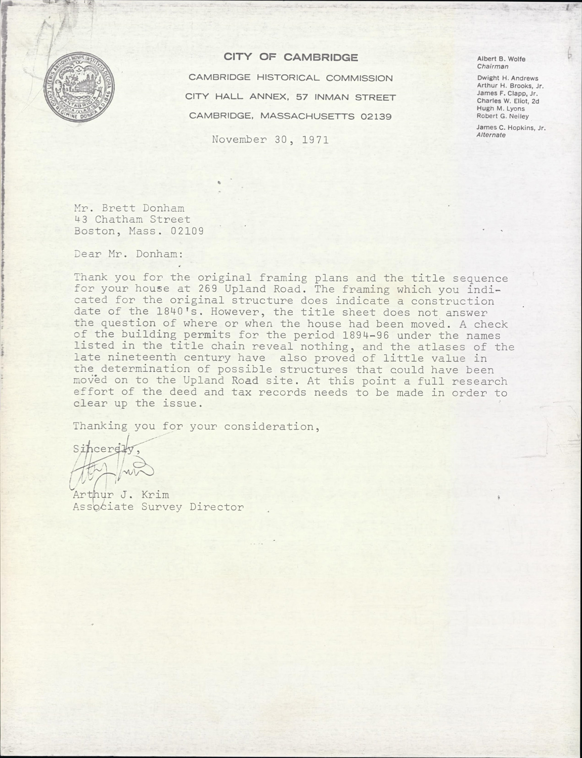 - Cambridge Historical Commission, Digital Architectural Survey and History.