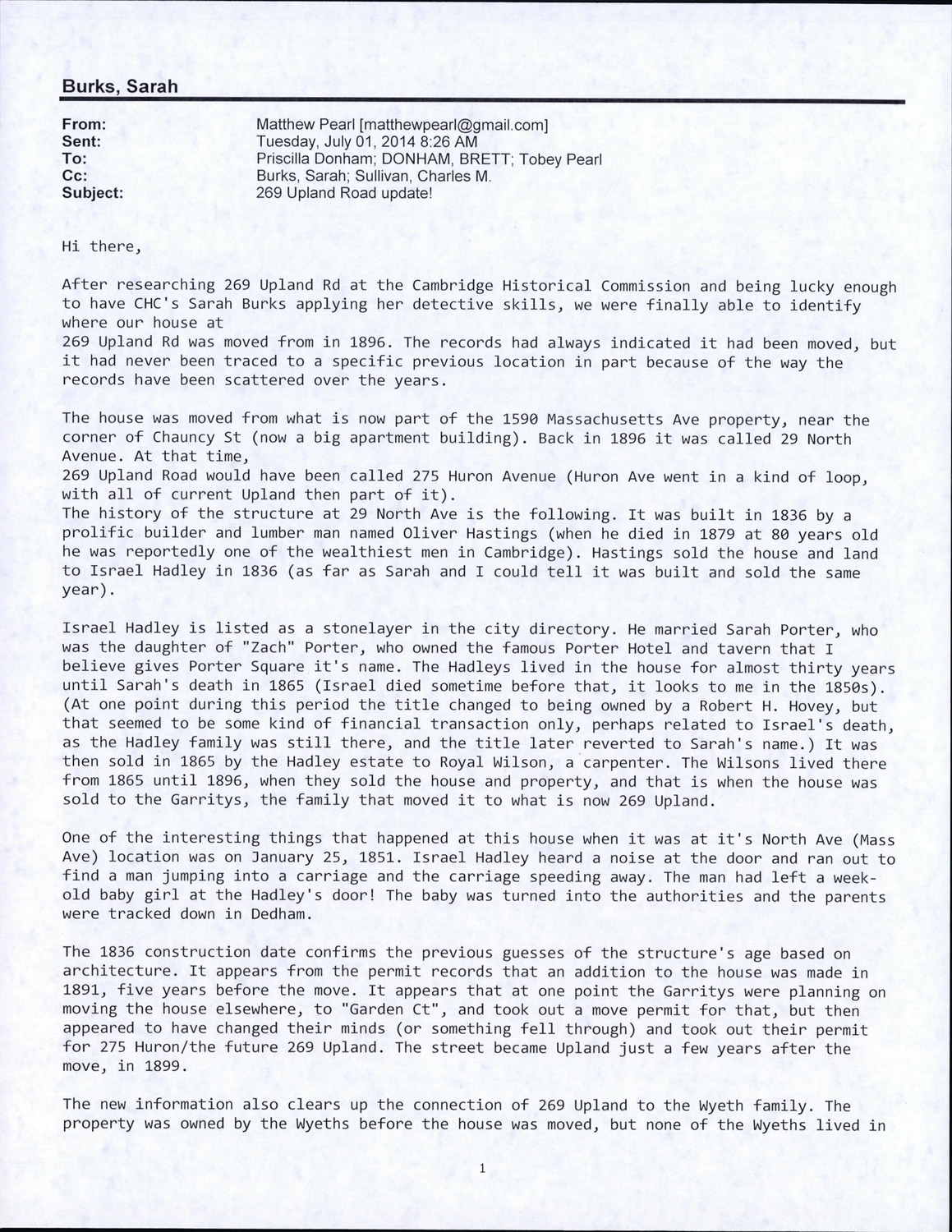 269 Upland Rd - Correspondence