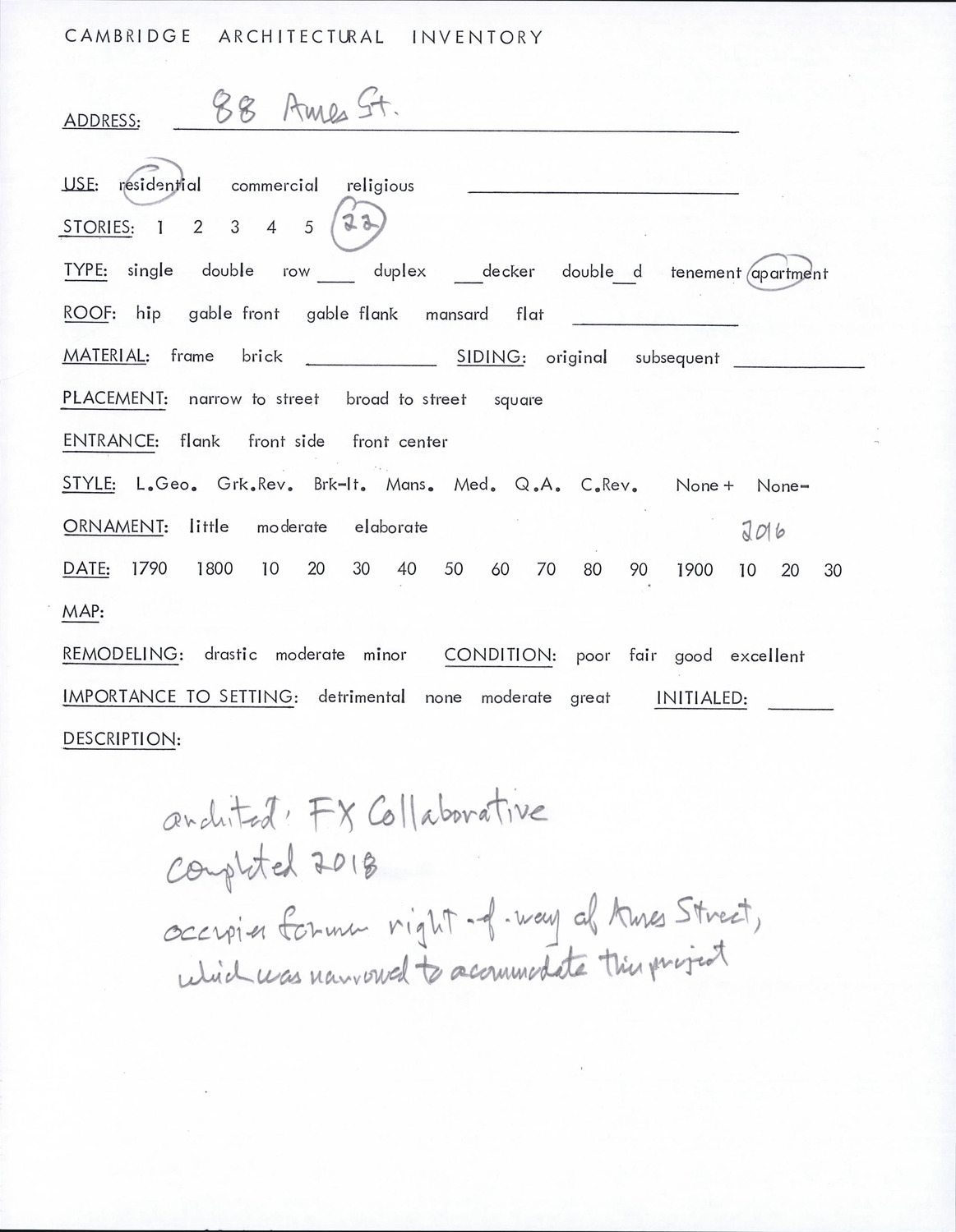 88 Ames St - Architectural Inventory Form