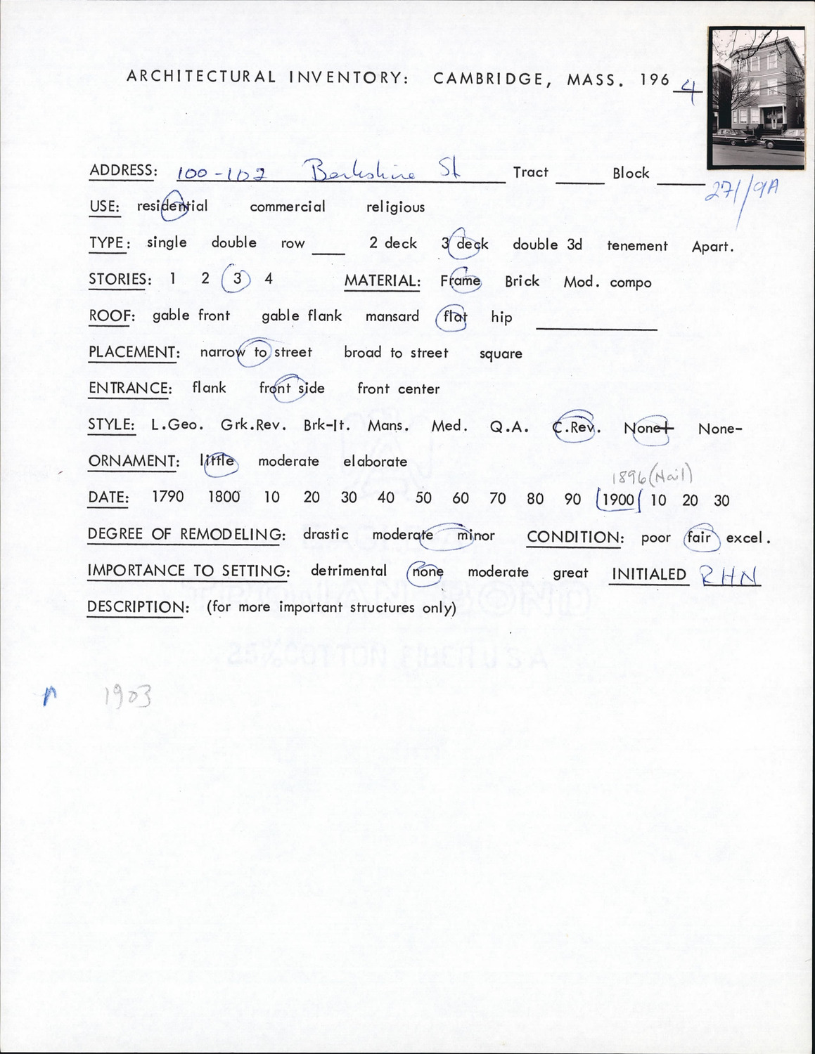 100-102 Berkshire St - Architectural Inventory Form