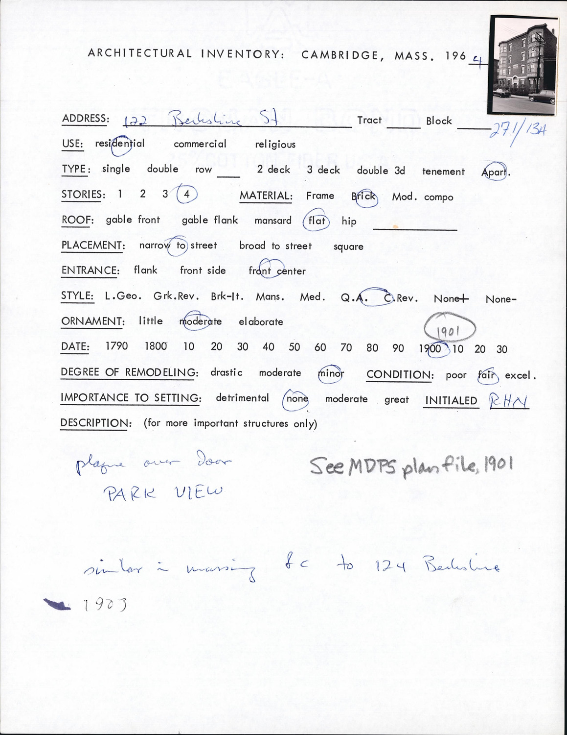 122 Berkshire St - Architectural Inventory Form