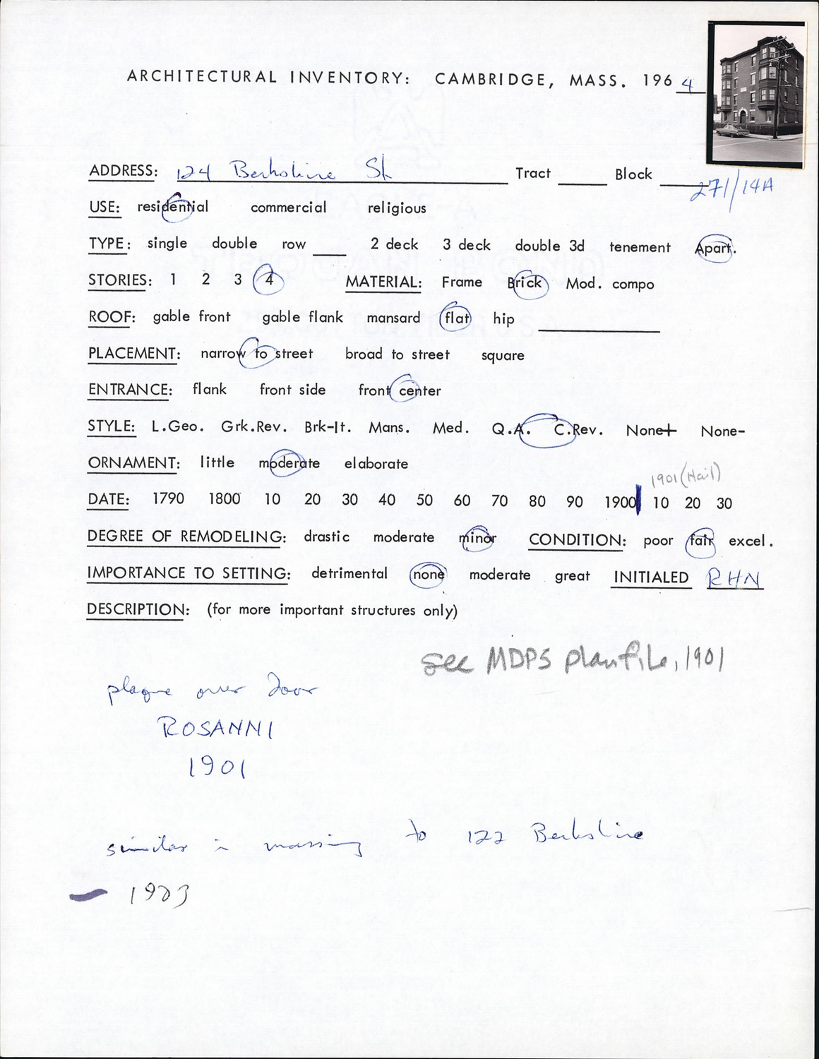 124 Berkshire St - Architectural Inventory Form