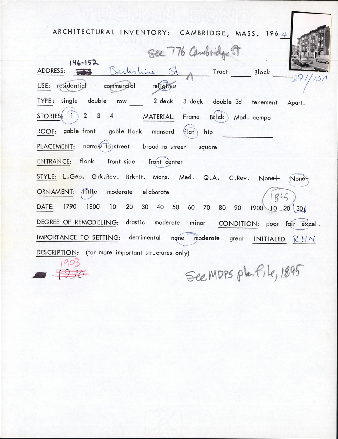 146-152 Berkshire St - Architectural Inventory Form