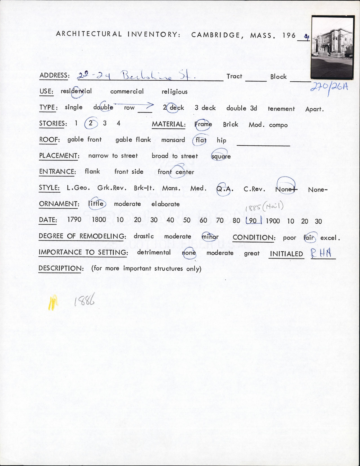 22-24 Berkshire St - Architectural Inventory Form